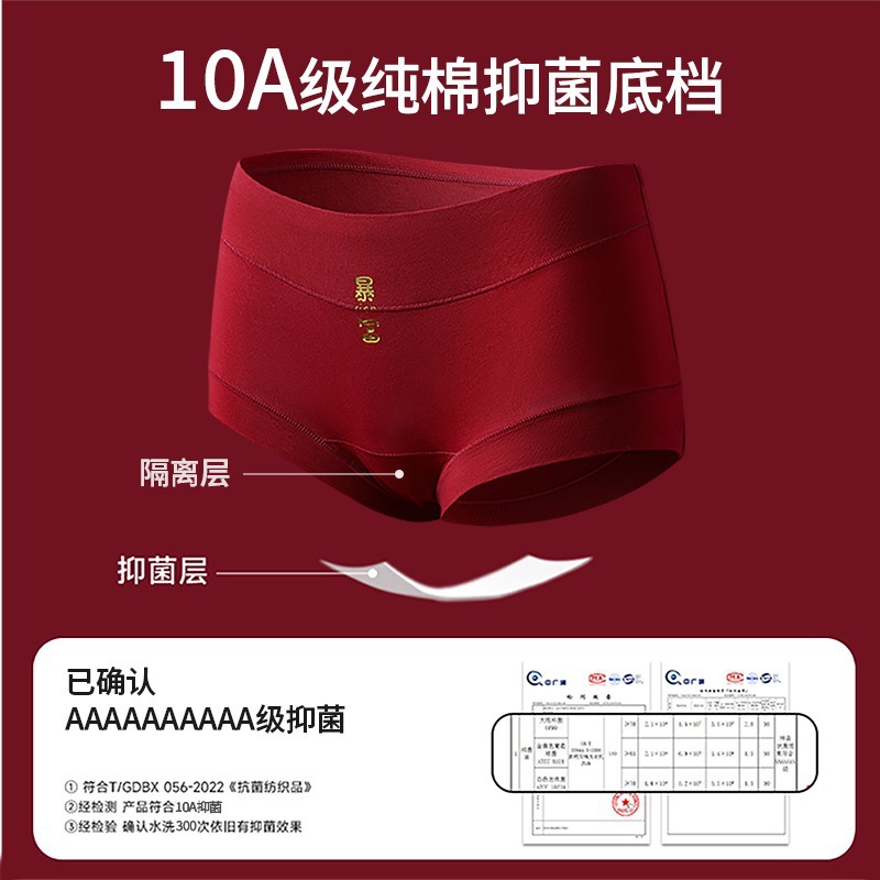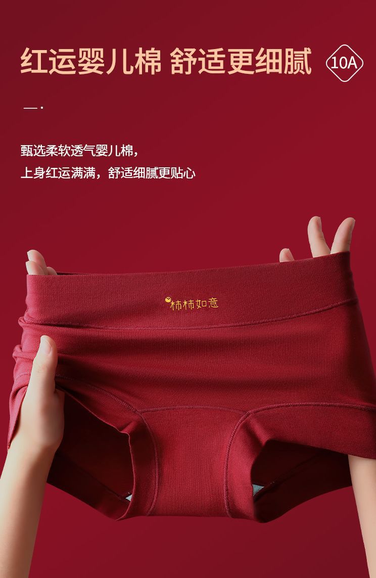 【鸿运福至红运满盈❗️甄选柔软透气婴儿棉】安哥拉红女士纯棉内裤10A抗菌加长底档舒适透气三角裤女纯棉裆。ja