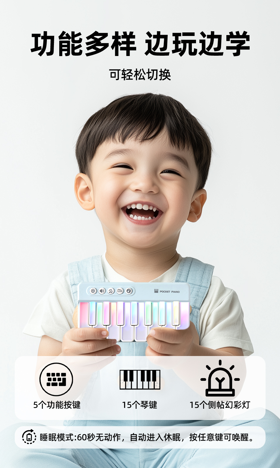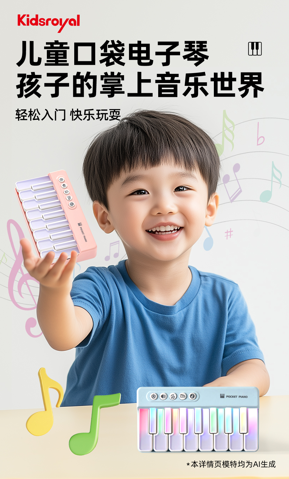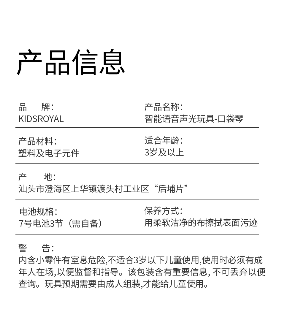 KIDSROYAL智能语音声光玩具-口袋琴(粉色/蓝色)