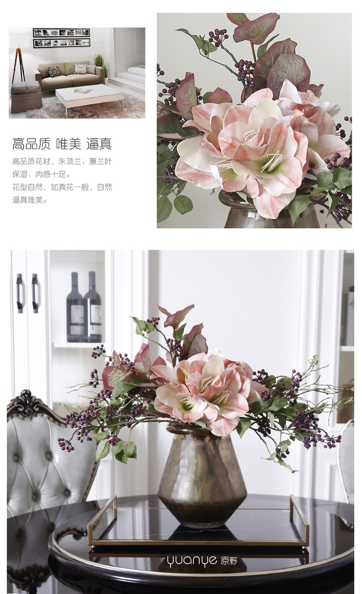 原野(yuanye) 朱顶兰仿真花束套装客厅餐桌卧室摆设装饰品假花干花绢花朱顶兰花摆件