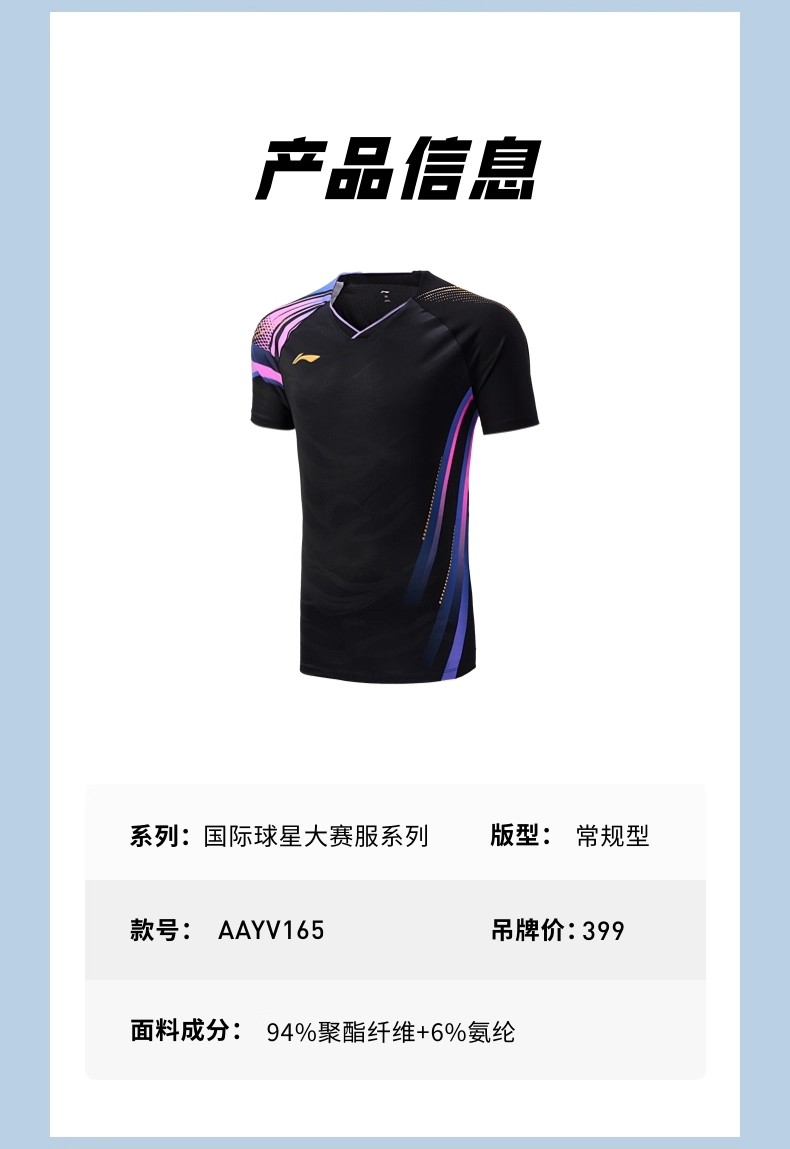 李宁 女款/男款 国际球星大赛系列 比赛上衣 黑色 AAYV146/AAYV165