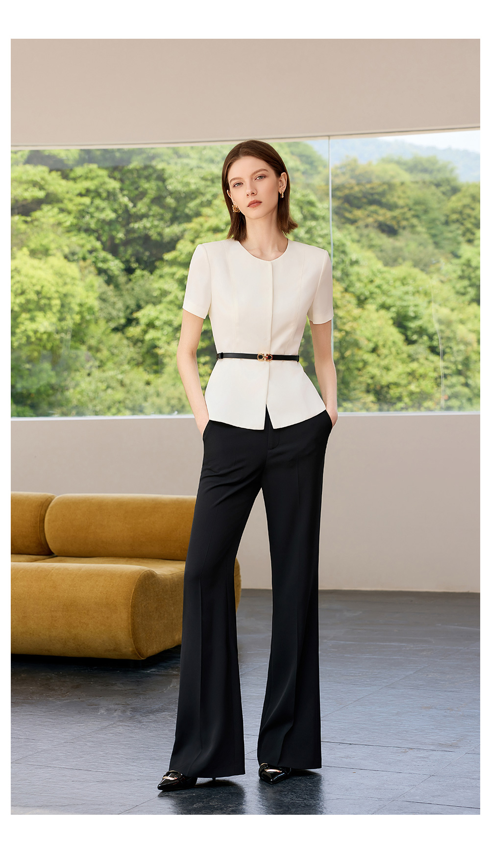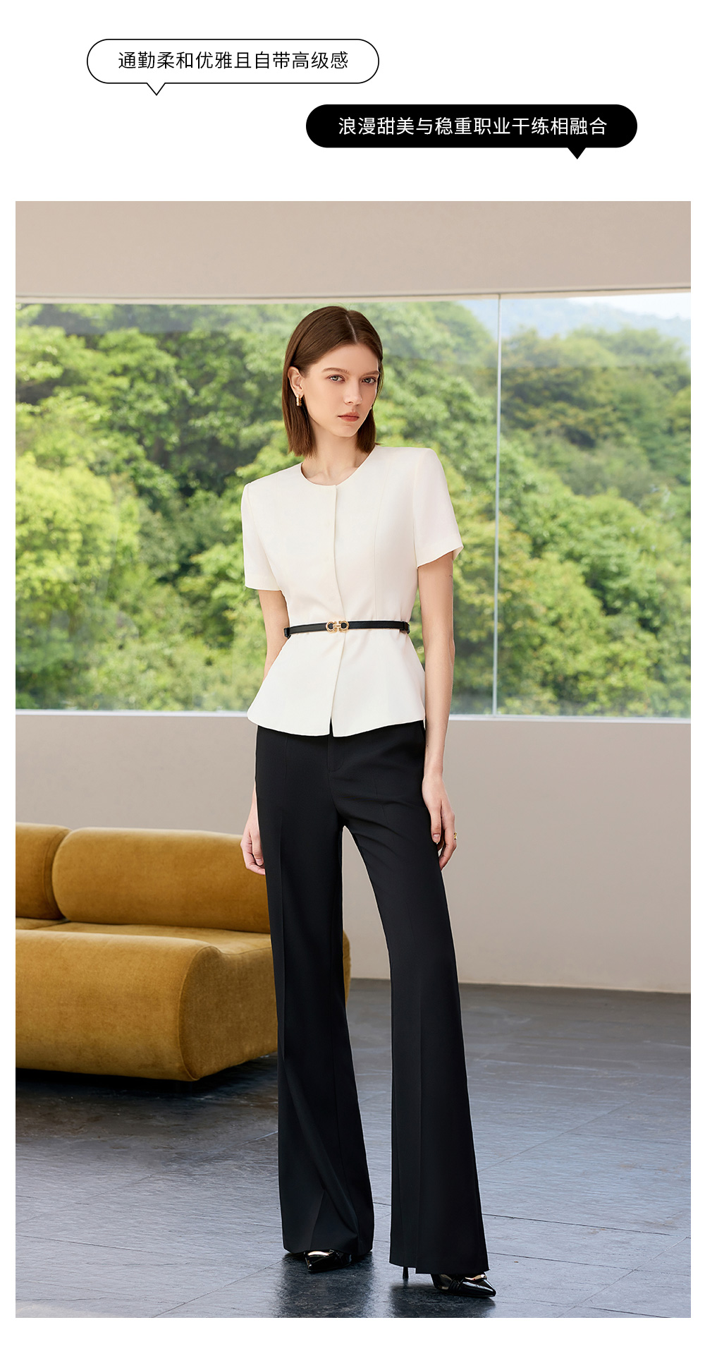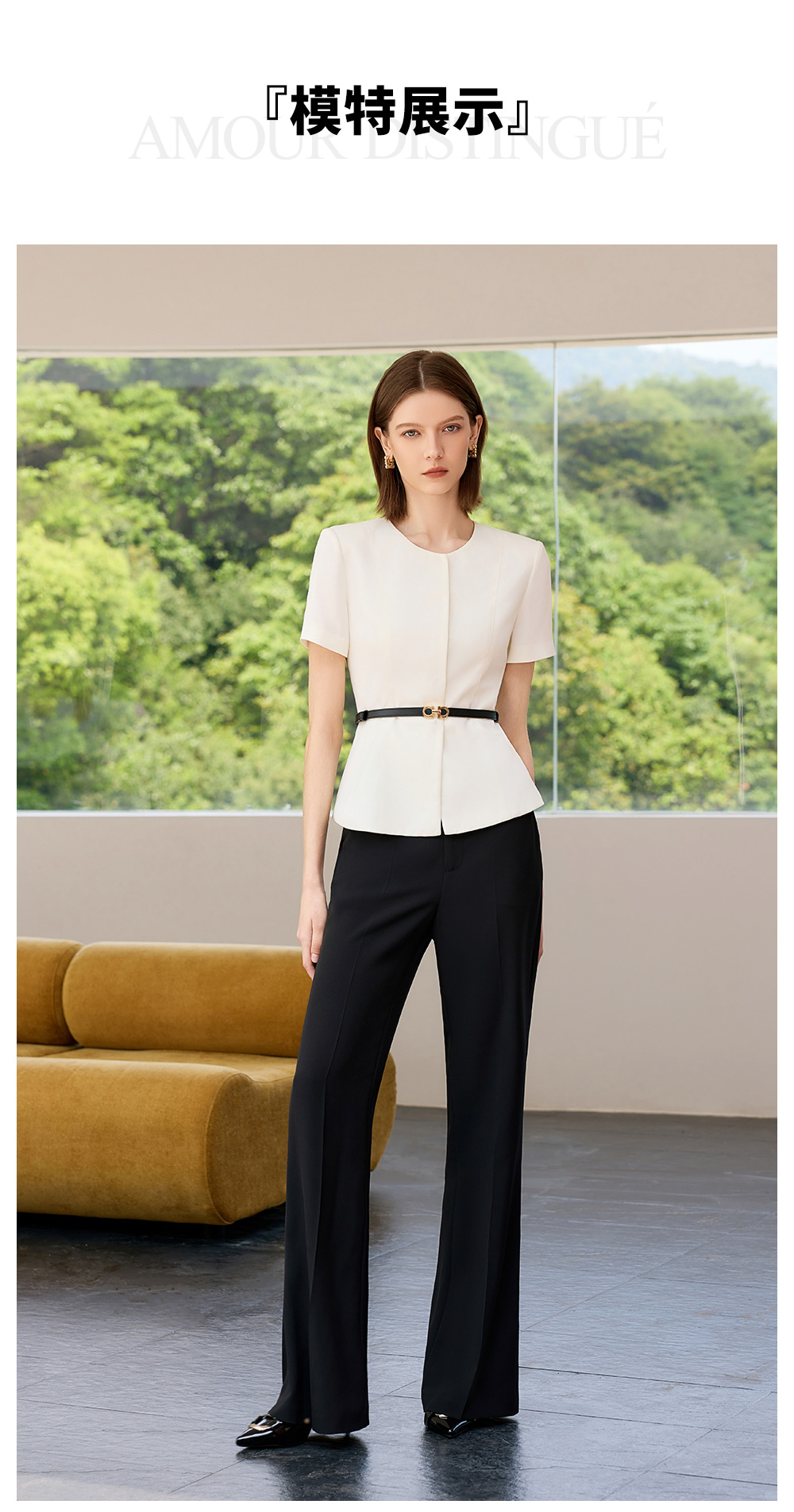 AD高端气质女神范职业套装女2025新款夏季假两件上衣阔腿裤两件套