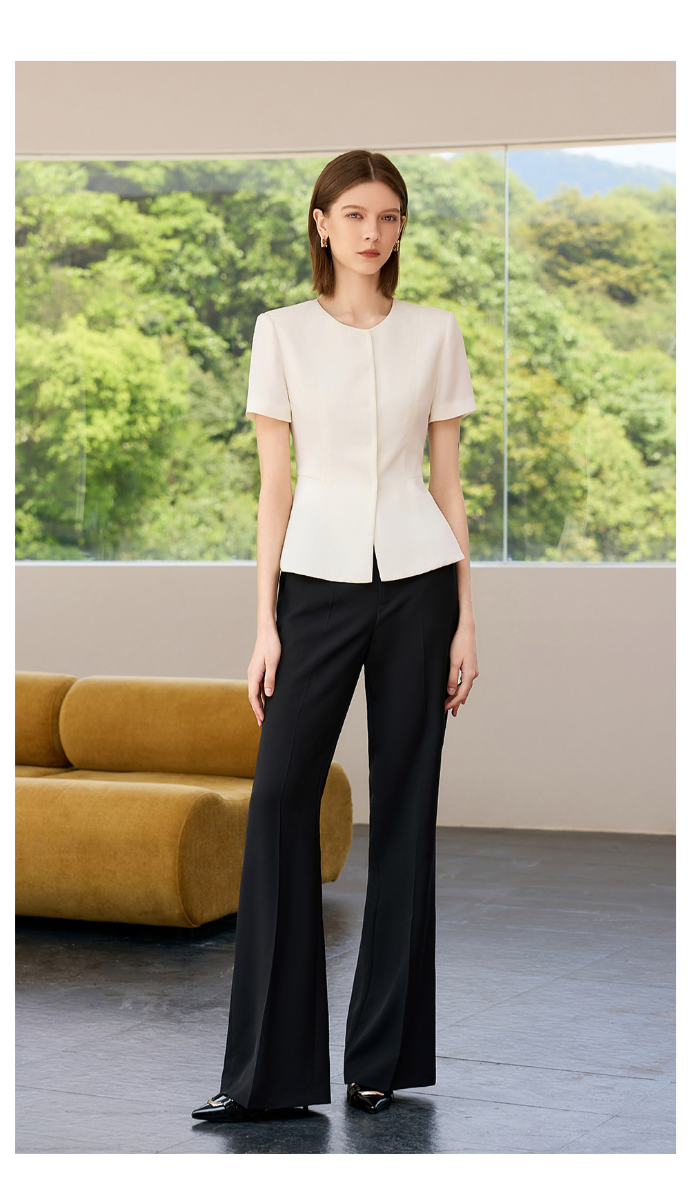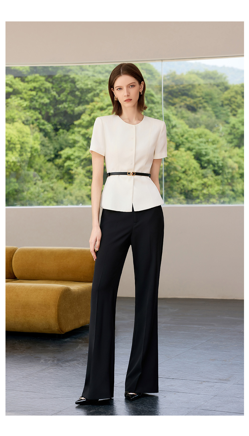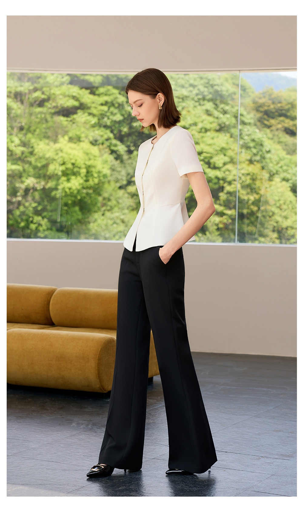 AD高端气质女神范职业套装女2025新款夏季假两件上衣阔腿裤两件套