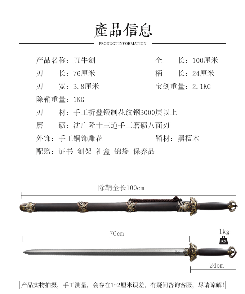 丑牛剑 生肖宝剑 龙泉沈广隆宝剑 未开刃