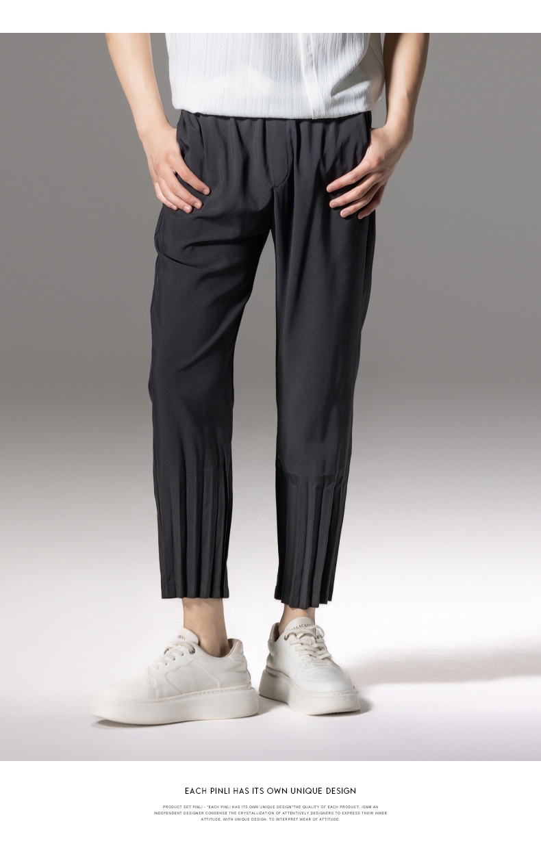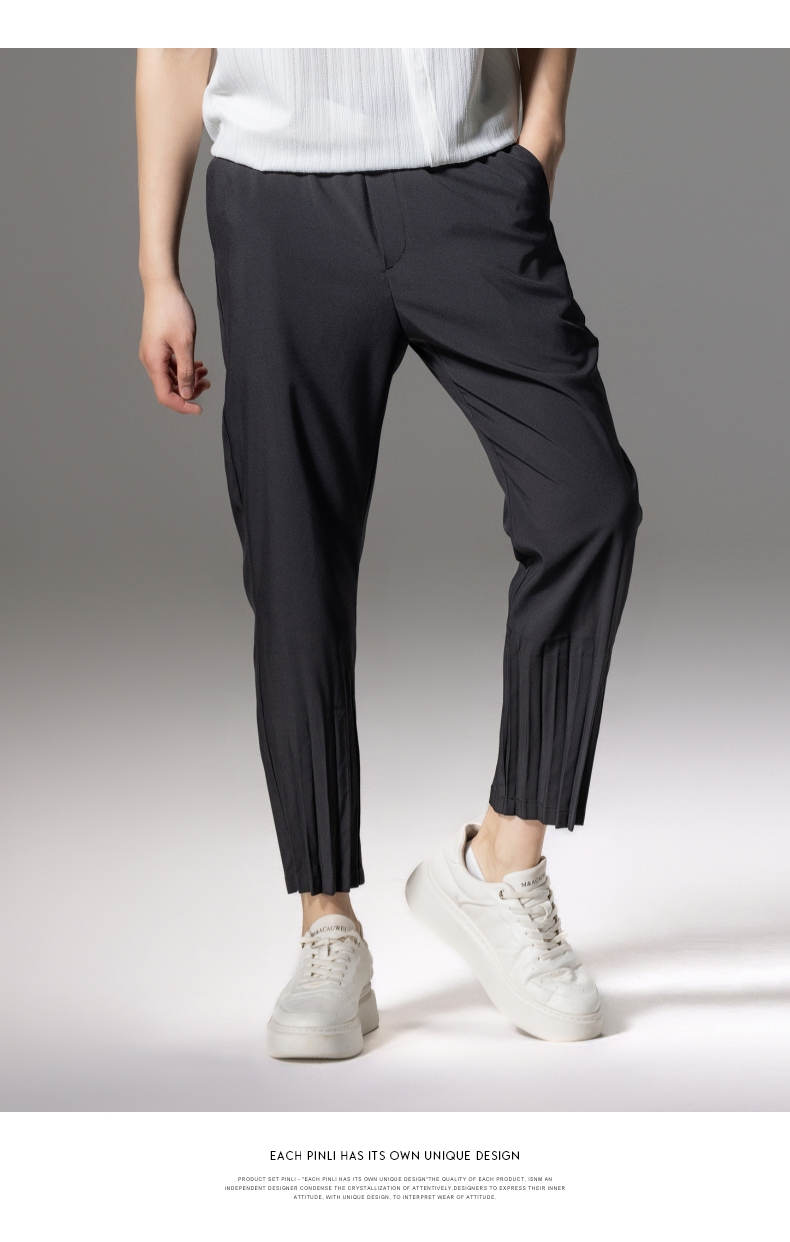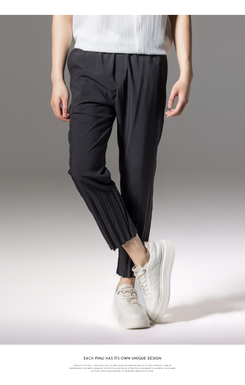 PINLI品立2024夏季新款男装压褶休闲小脚裤薄款九分裤潮牌束脚裤B242117159