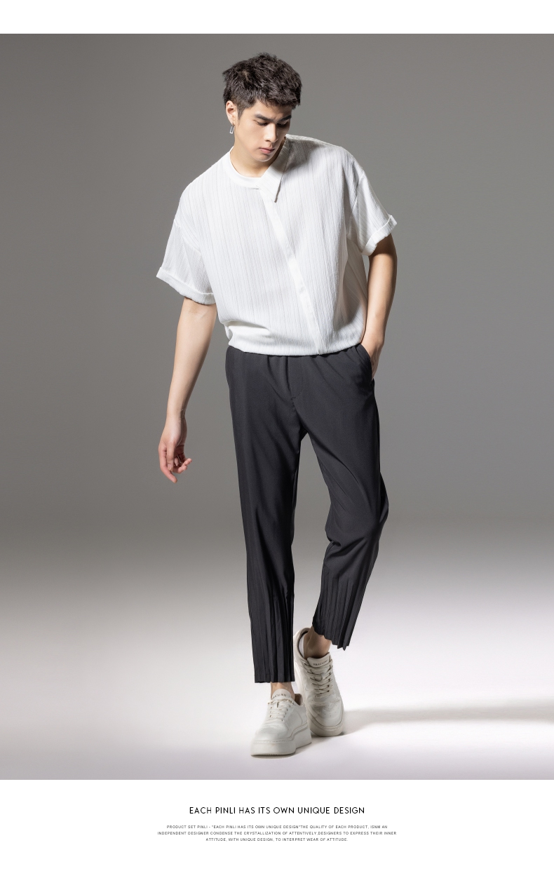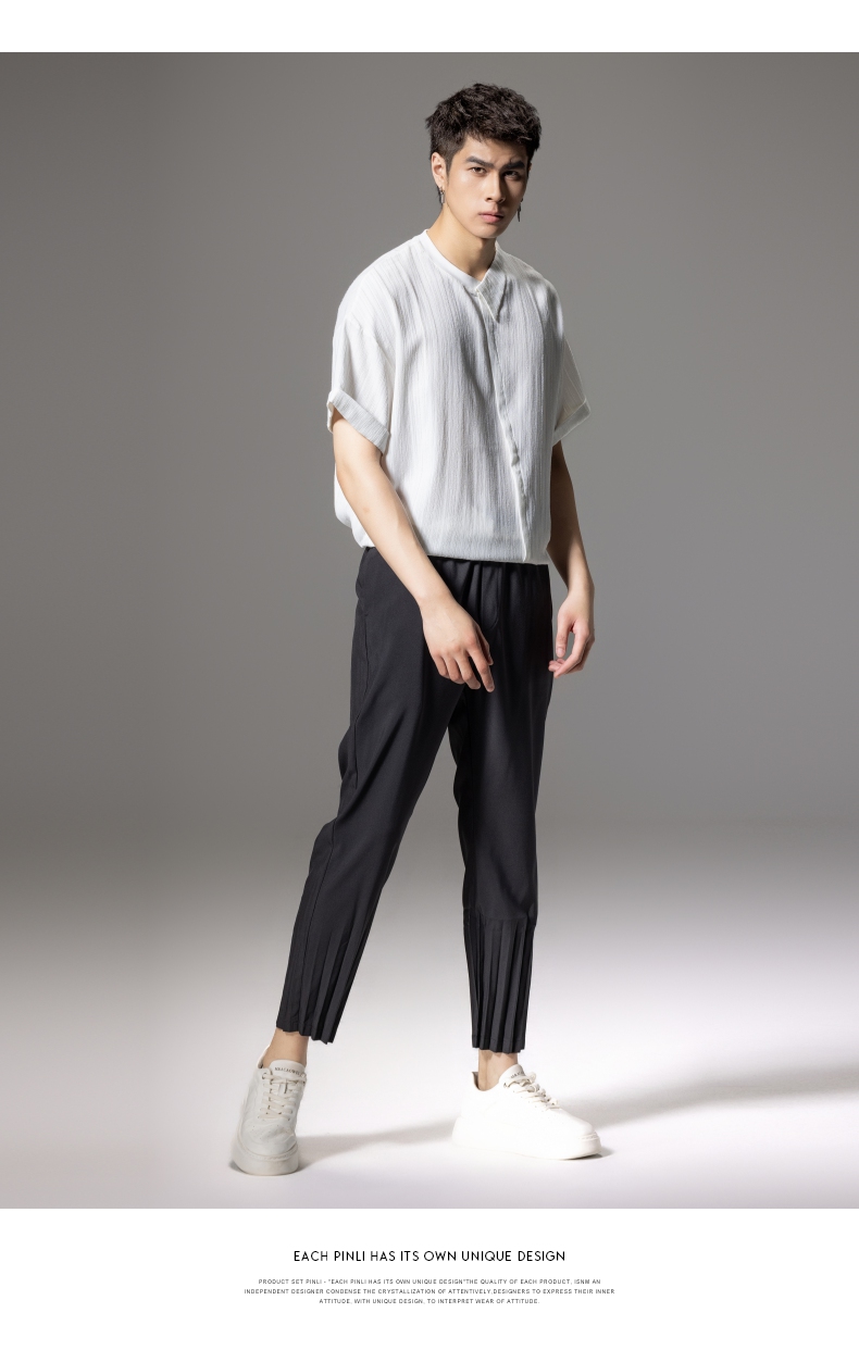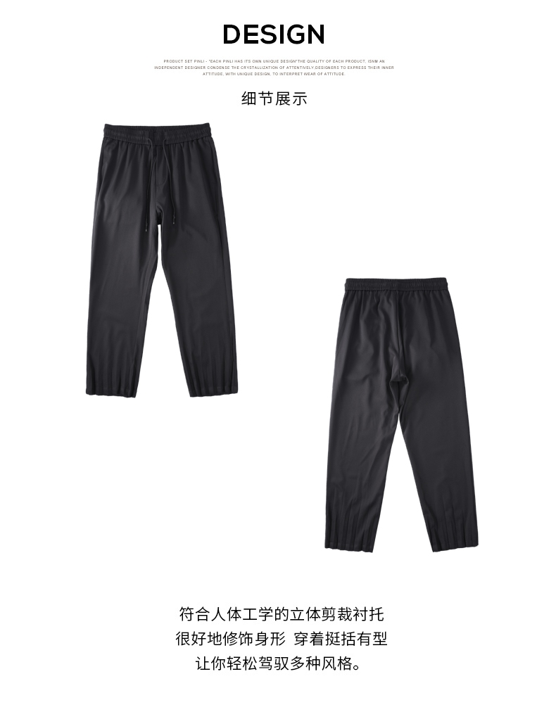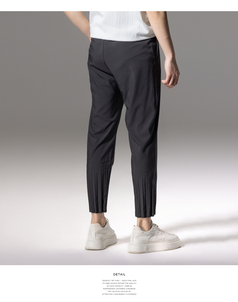 PINLI品立2024夏季新款男装压褶休闲小脚裤薄款九分裤潮牌束脚裤B242117159