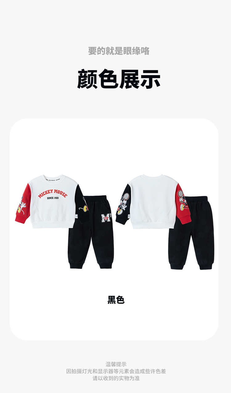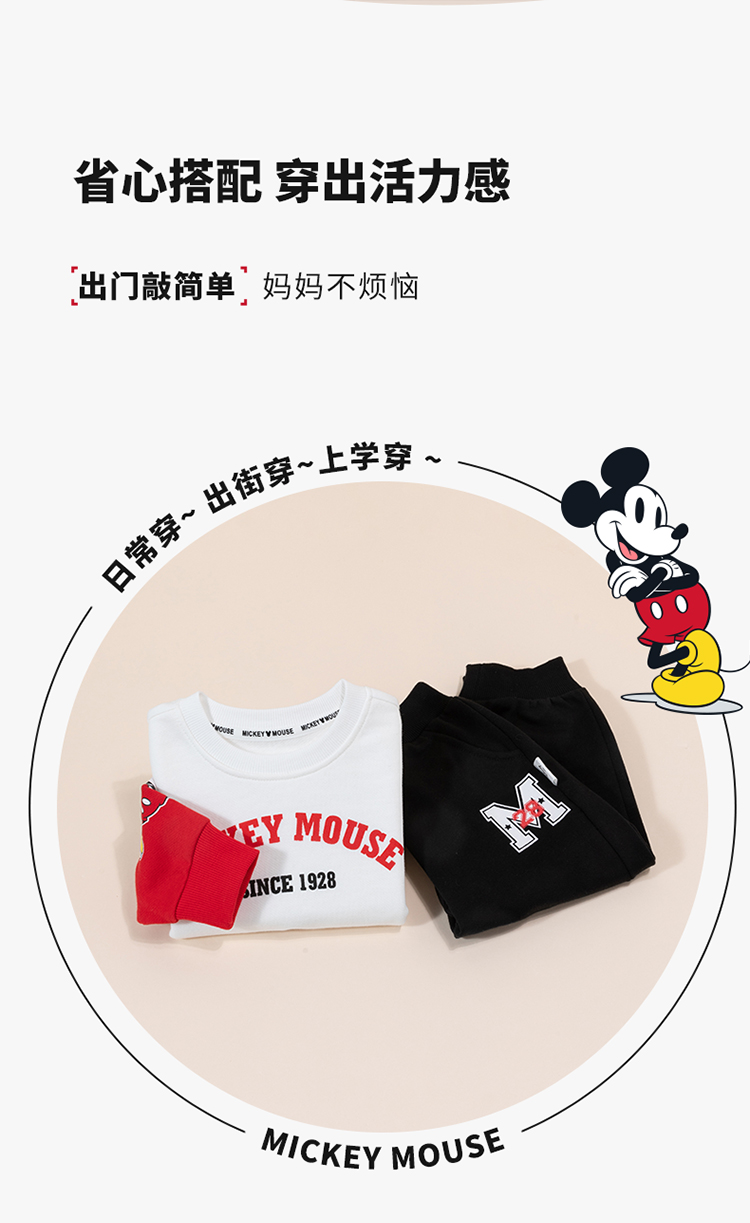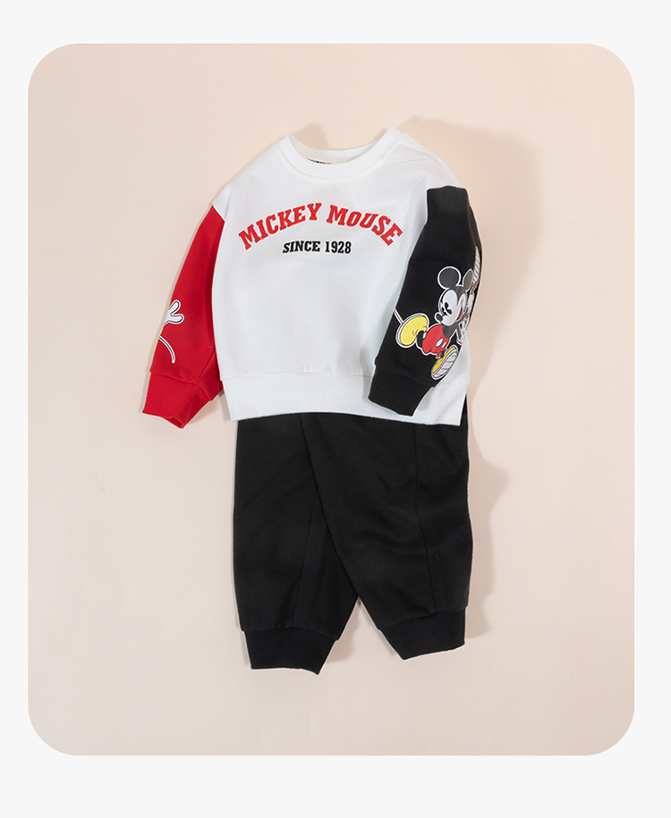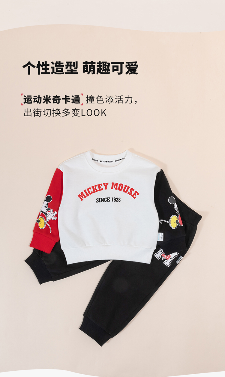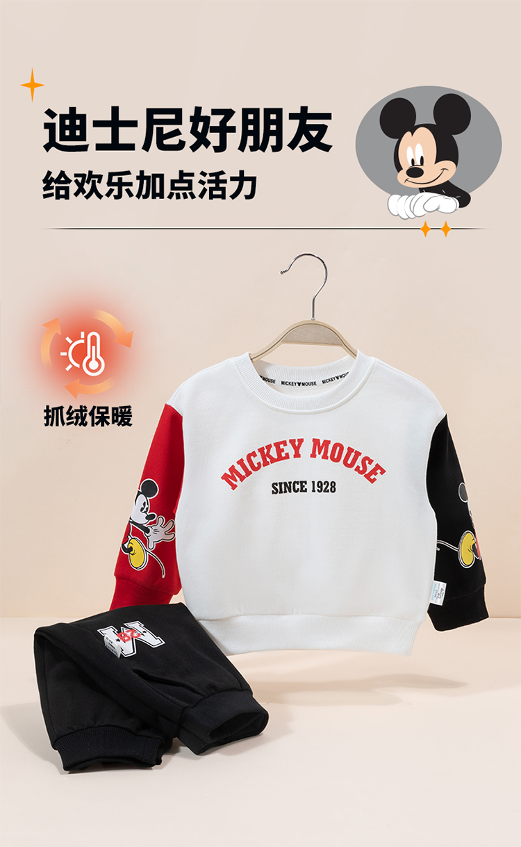 贝贝怡迪士尼联名童装男女童卫衣套装加绒秋冬加厚裤子休闲两件套ZB3CT006
