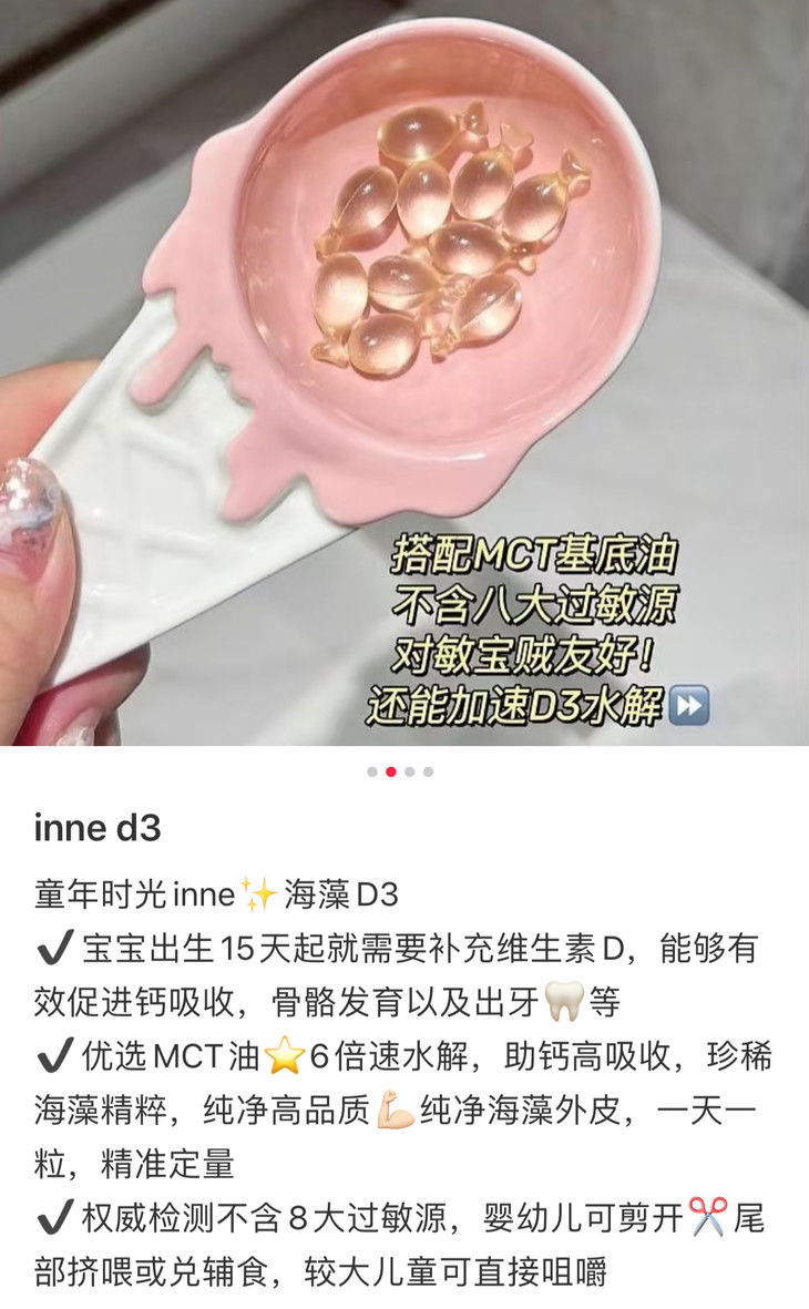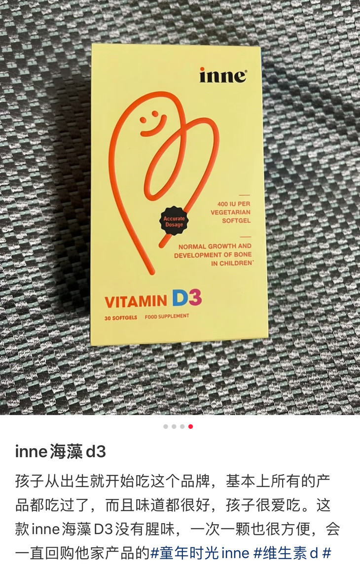 [屁侠推荐]inne 维生素D3 海藻皮400IU 敏宝可用 宝宝儿童胶囊