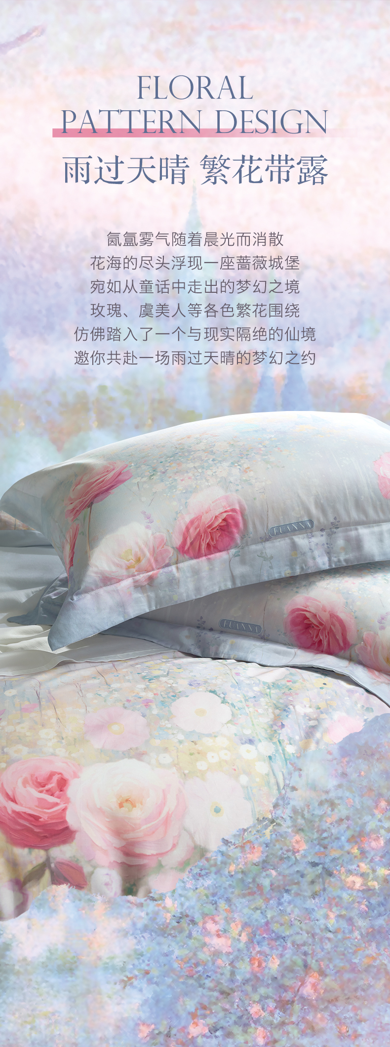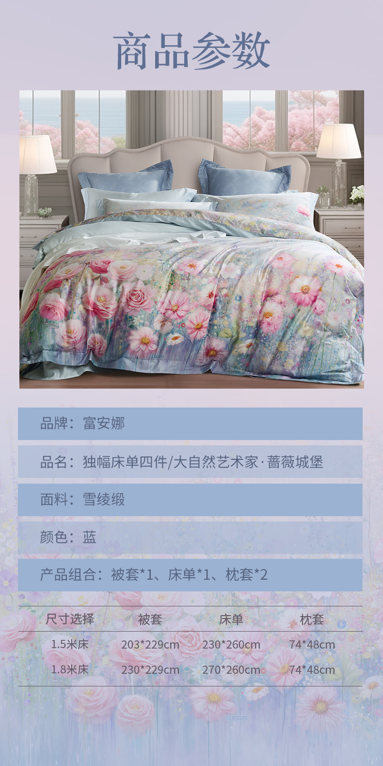 【6楼】富安娜独幅床单四件/大自然艺术家·蔷薇城堡,牌牌价3680~3980元,活动价1799元,大小同价