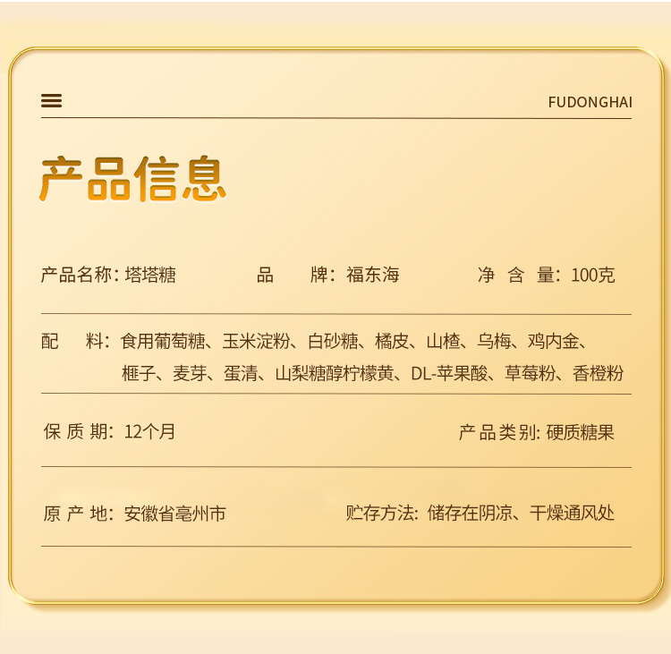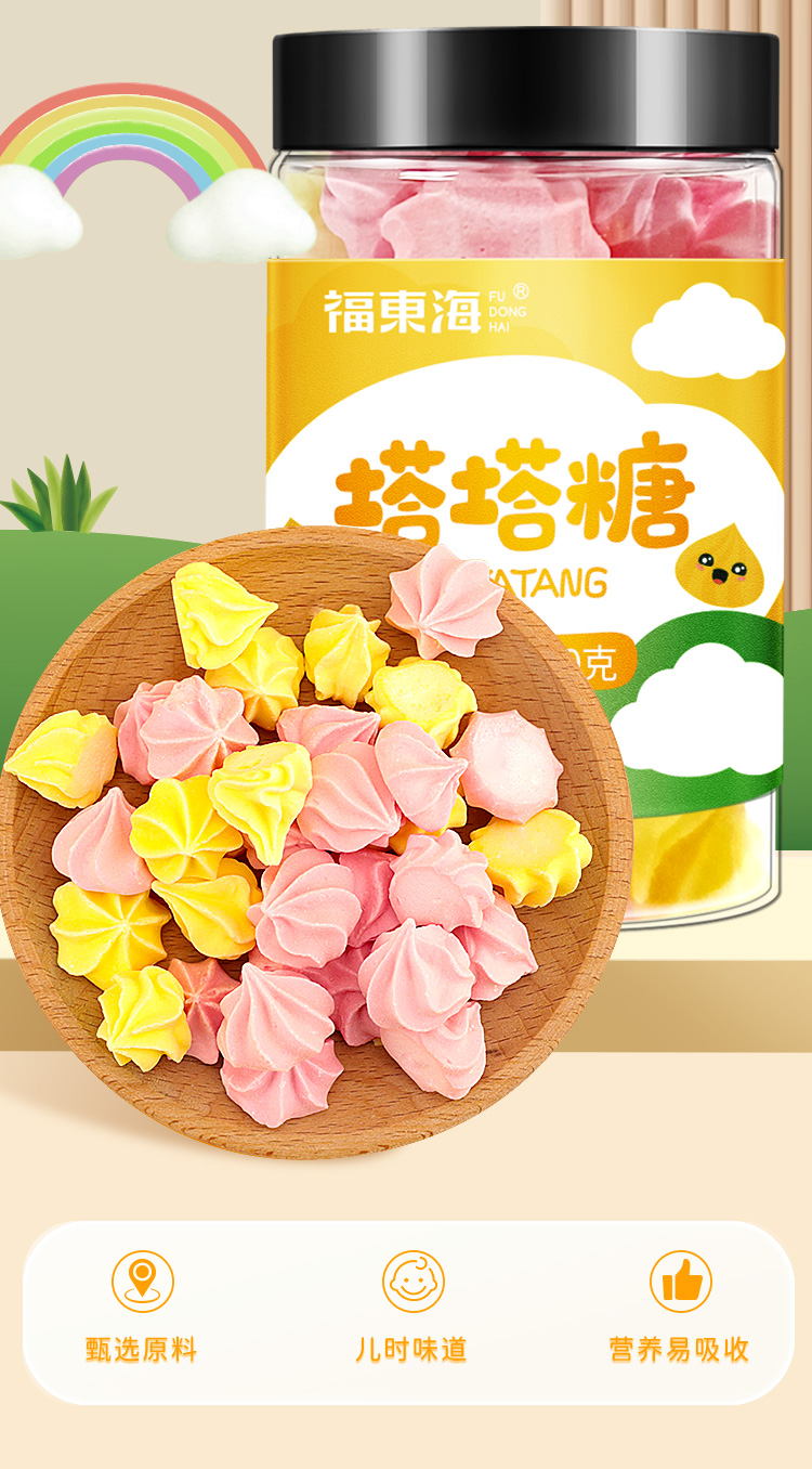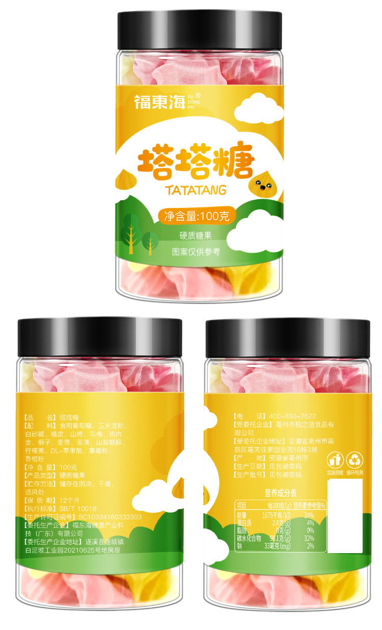 福东海 塔塔糖100克 宝塔糖含山楂鸡内金陈皮搭儿童 水果味口味宝宝糖果