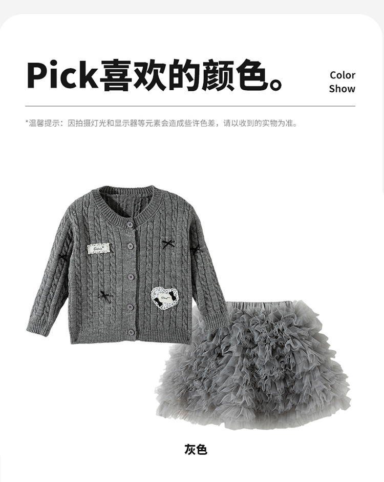 贝贝怡复古毛衣+网纱短裙套装春秋新款女童甜套装ZB3ET064