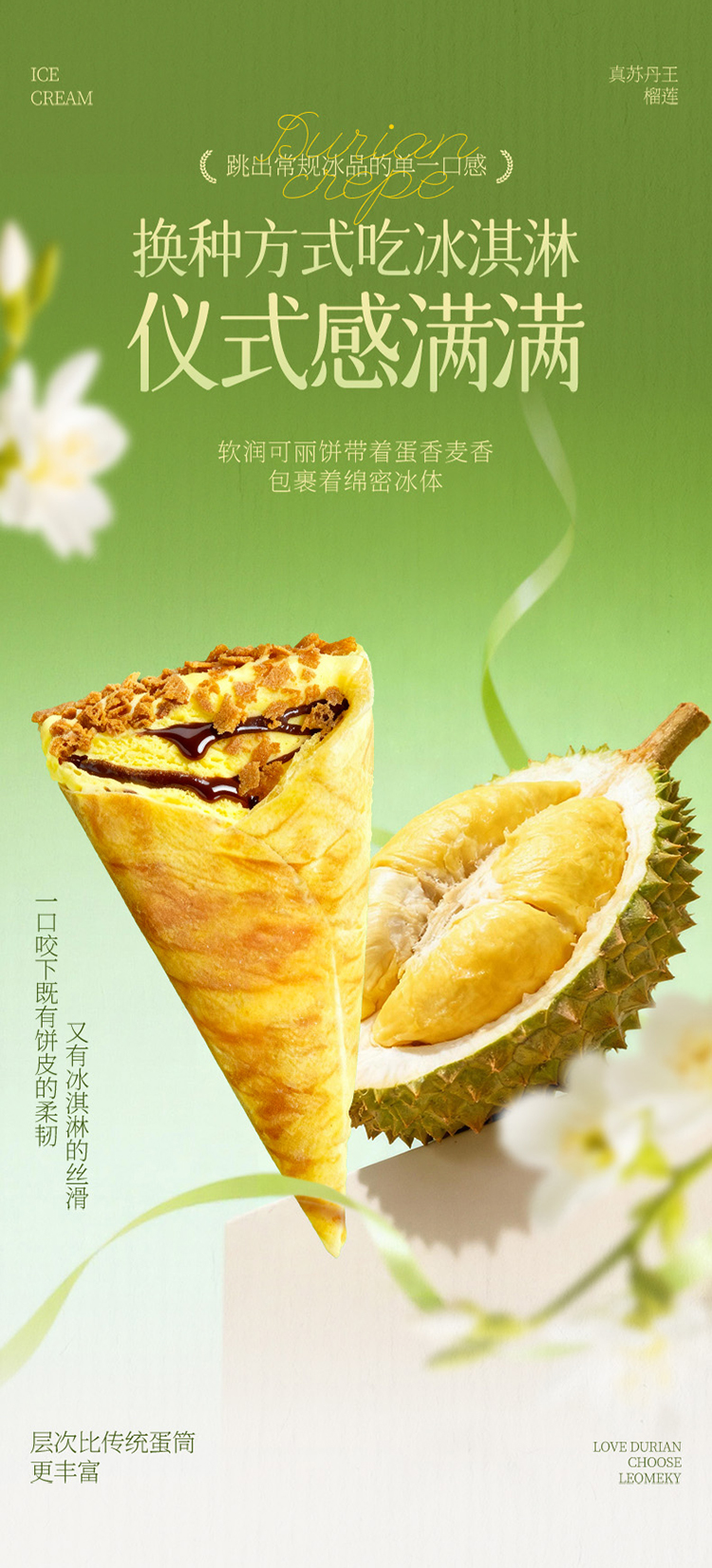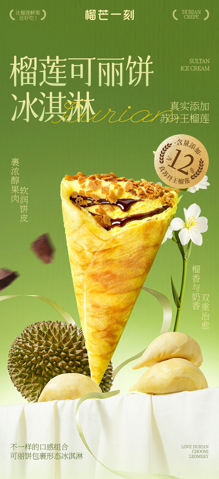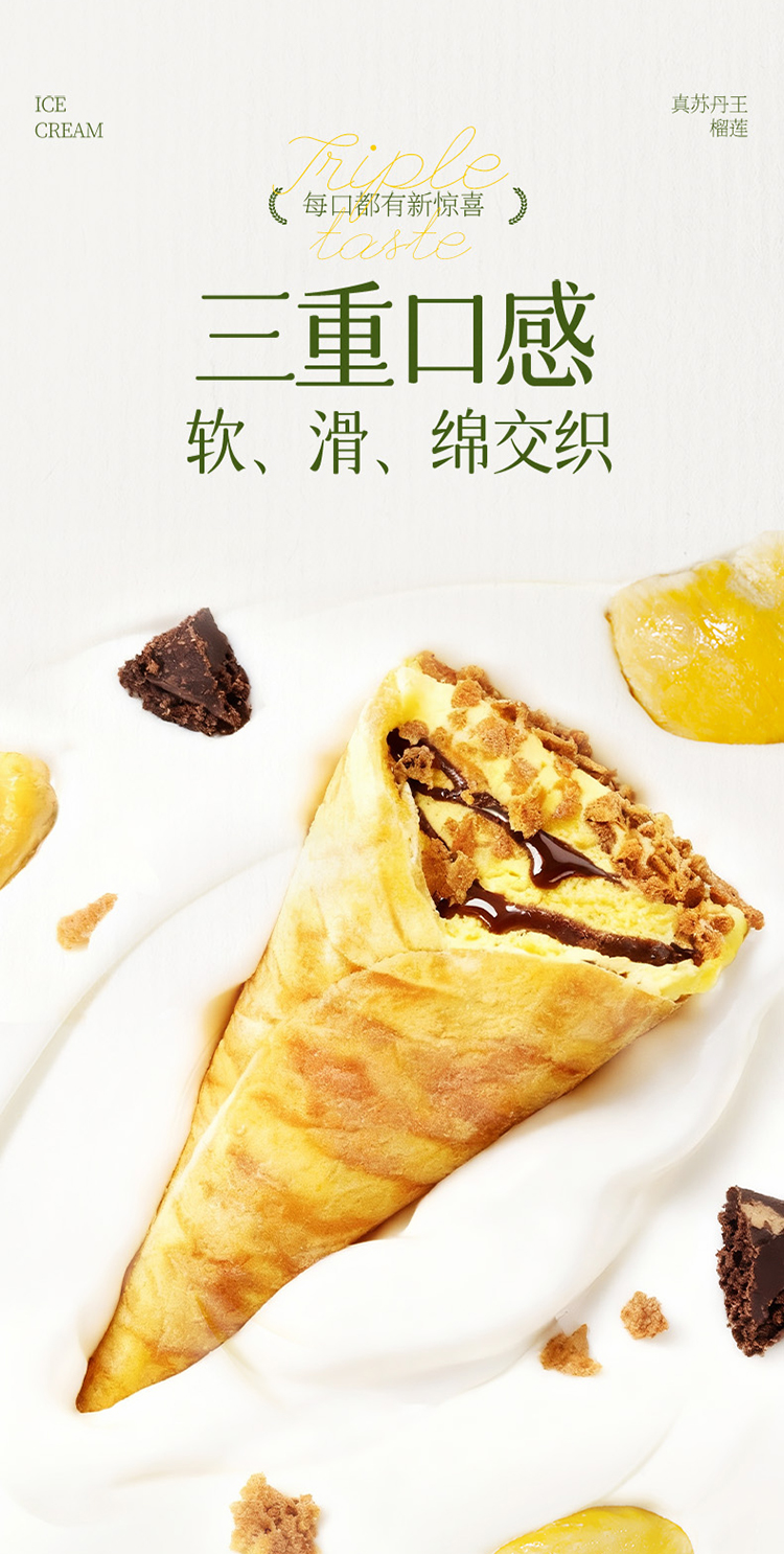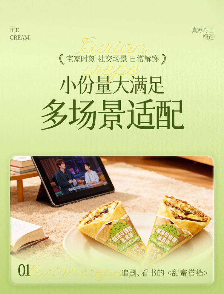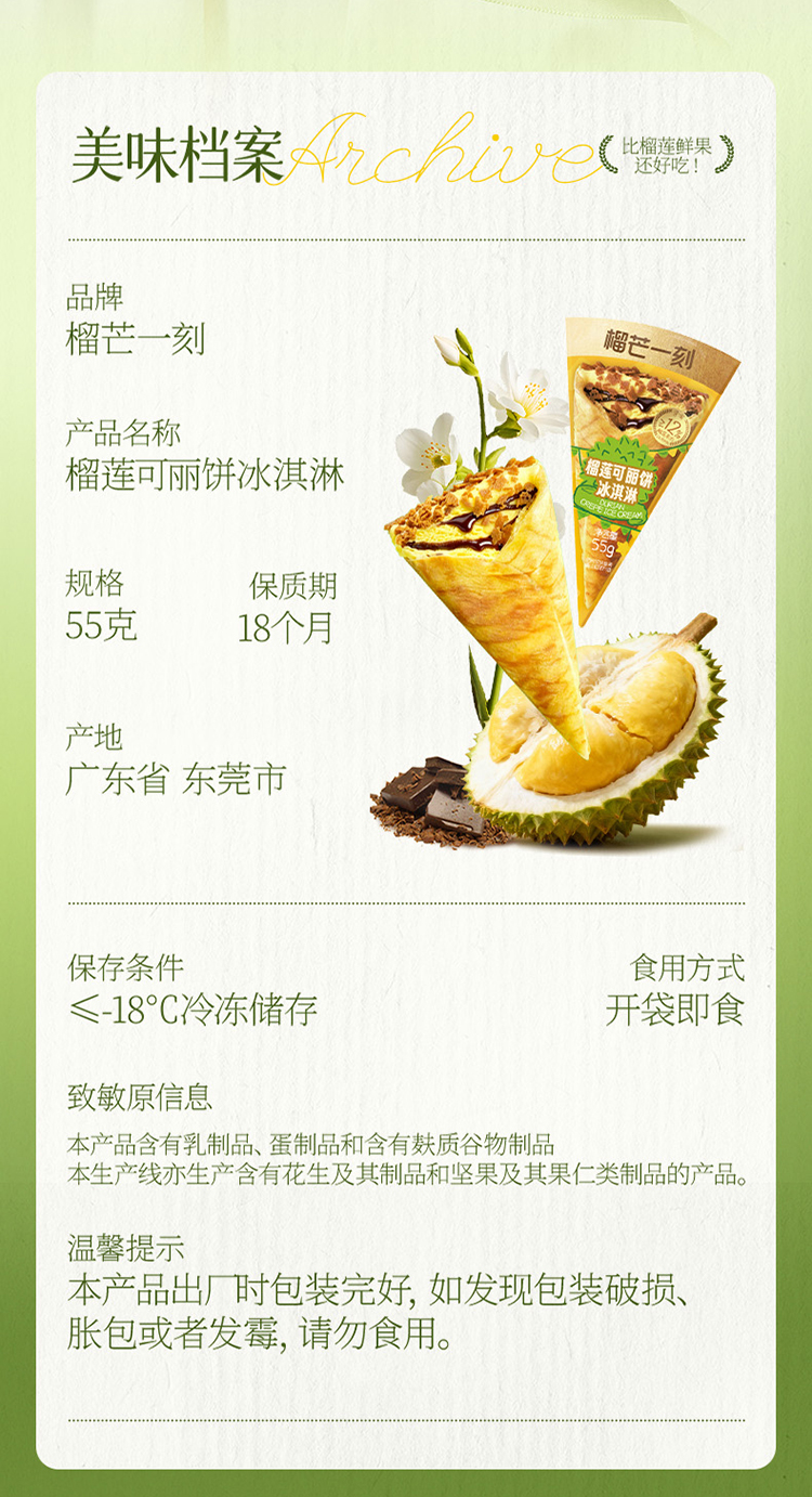 榴芒一刻榴莲可丽饼冰淇淋55g*8/10支 下午茶生日礼物年货甜点 HY
