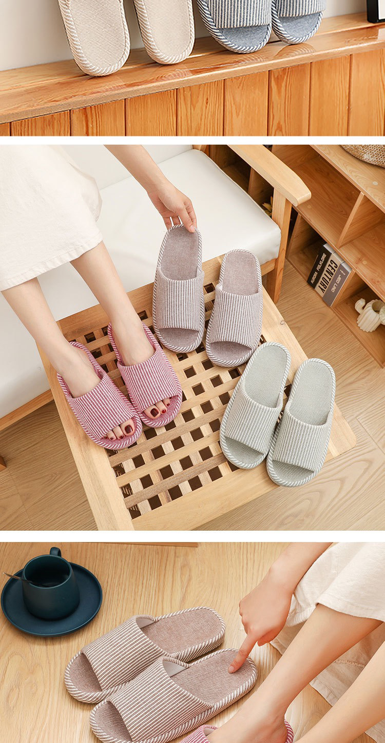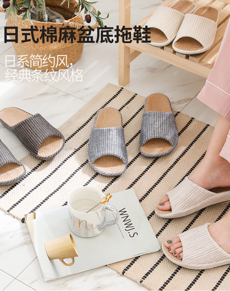 吸汗透气~日式亚麻盆底拖鞋软家用棉麻女四季家居室内透气春秋高跟露趾轻便防滑拖鞋