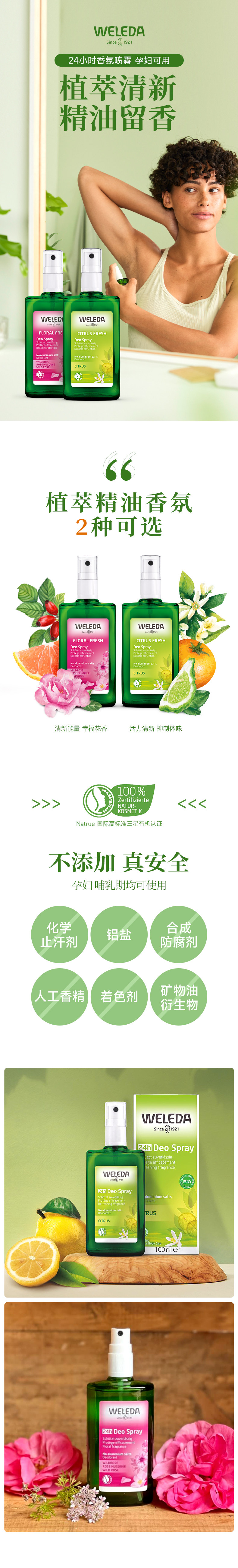 【品牌旗舰】WELEDA维蕾柑橘玫瑰身体香氛喷雾100ml