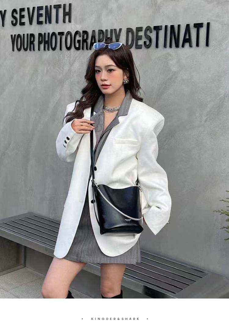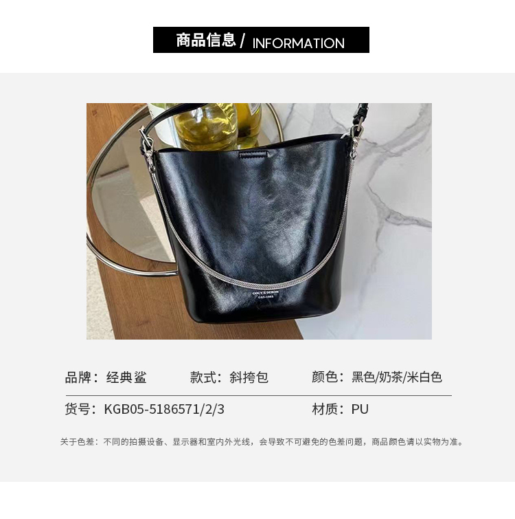 经典鲨2025年新款百搭纯色简约单肩斜挎水桶包女士KGB05-5186571