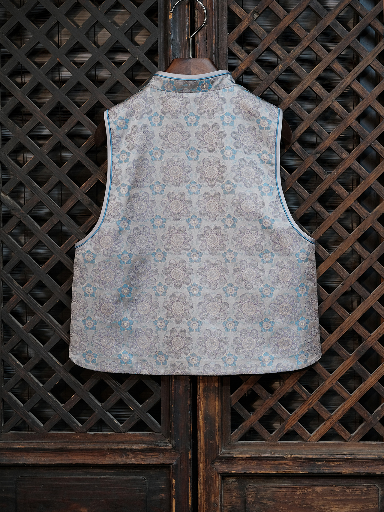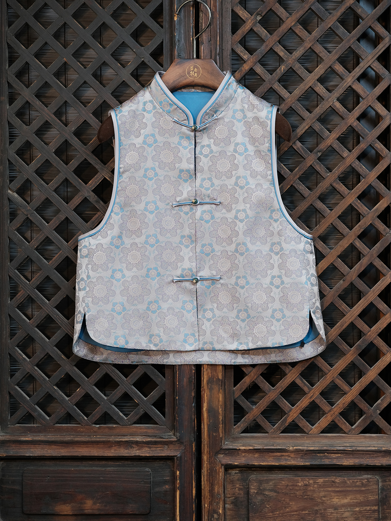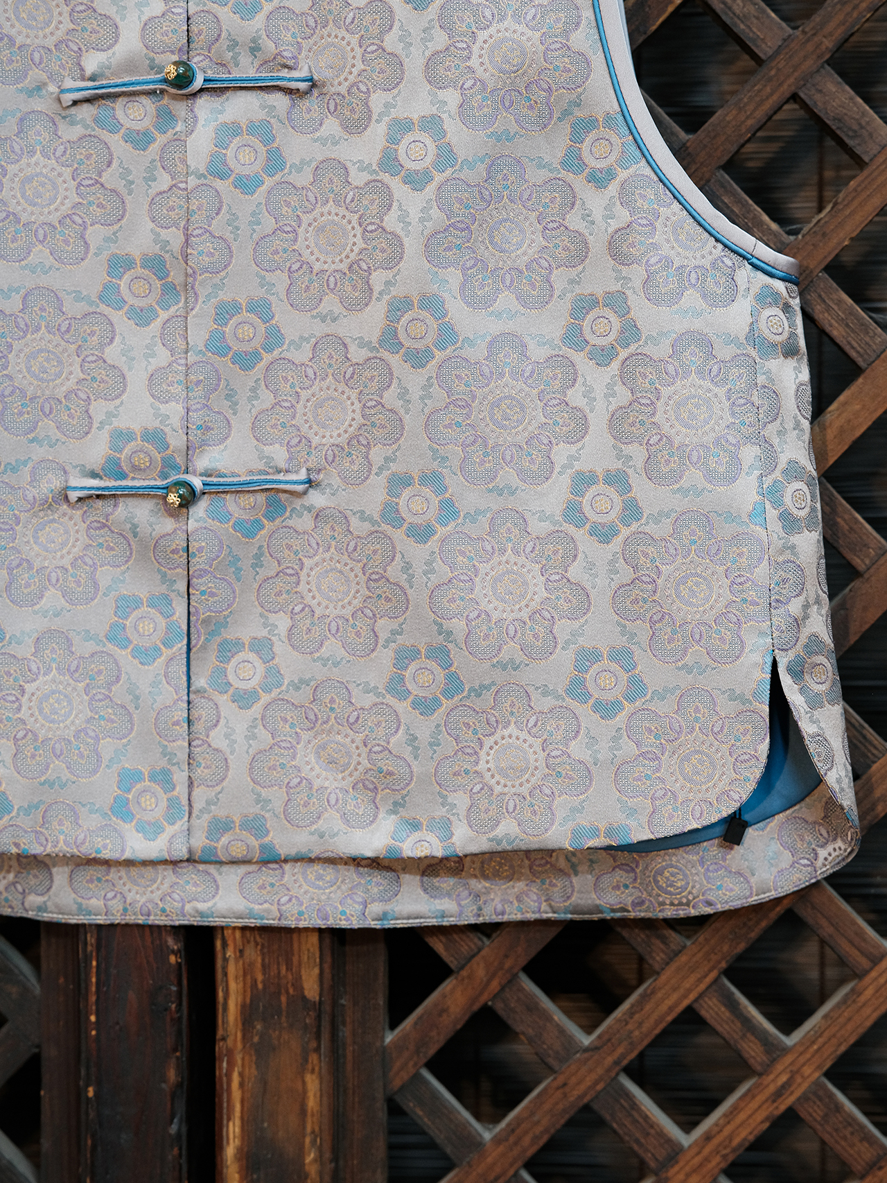 盛唐婧 |真丝宋锦回纹团花对襟马甲