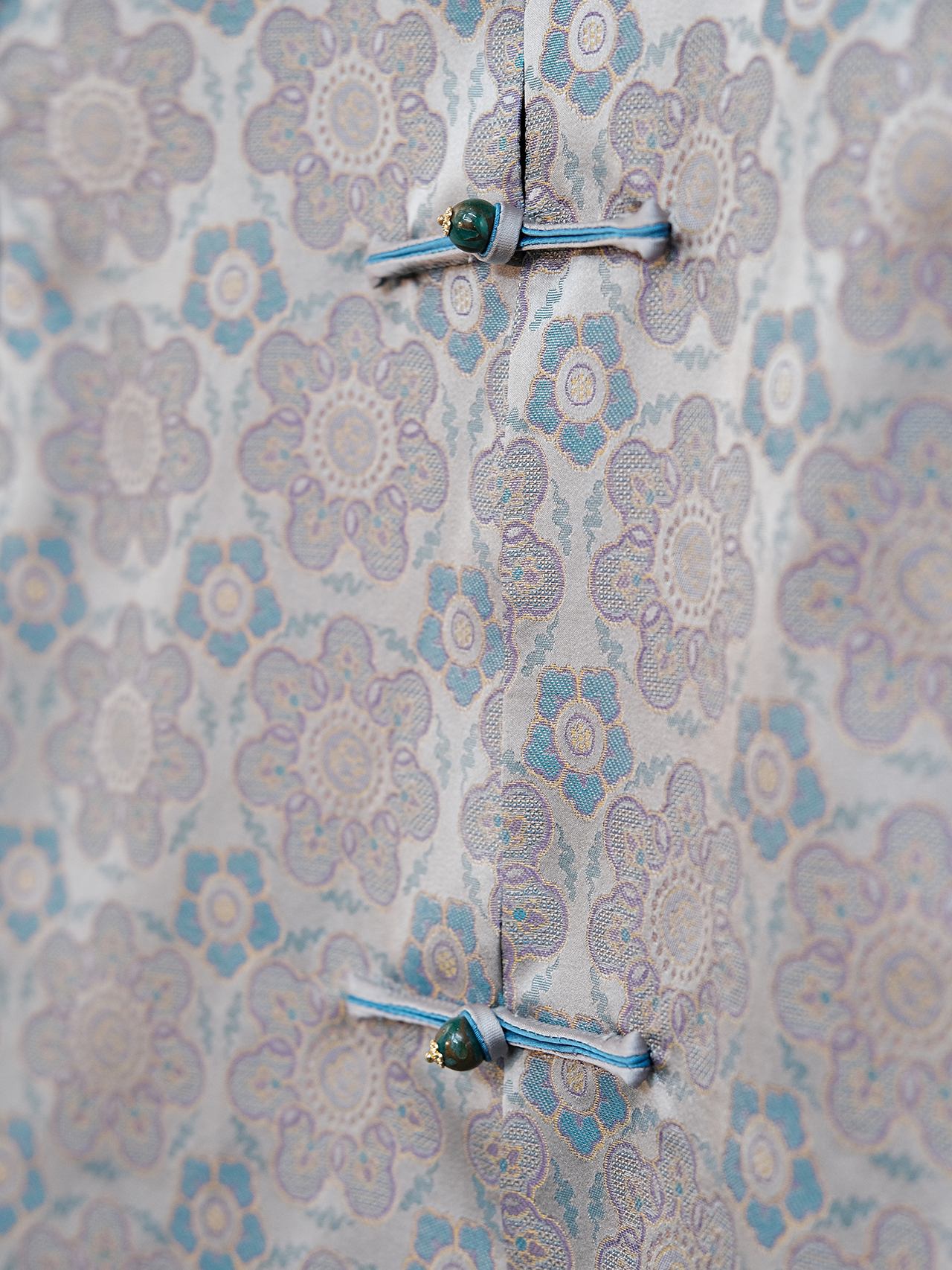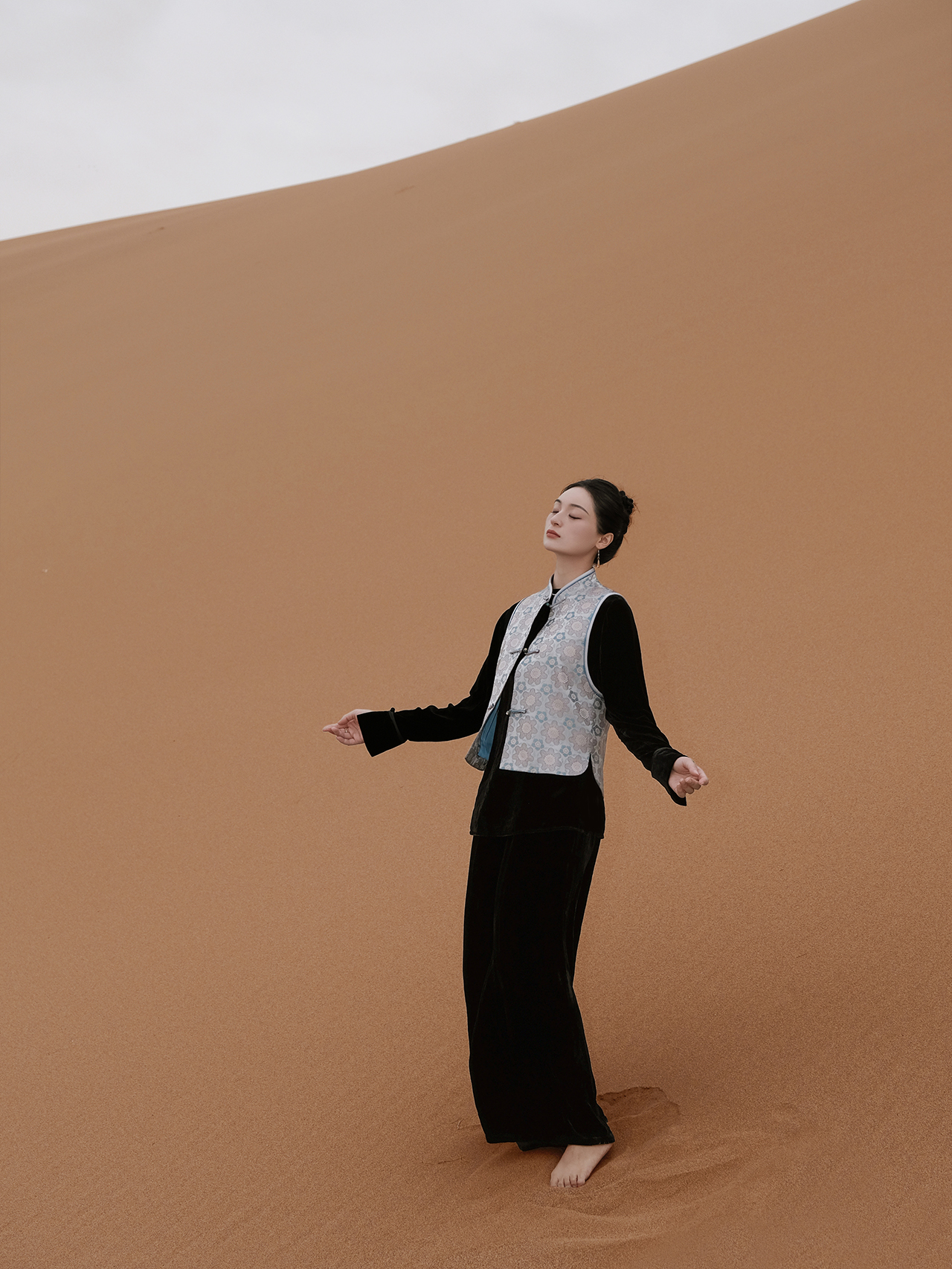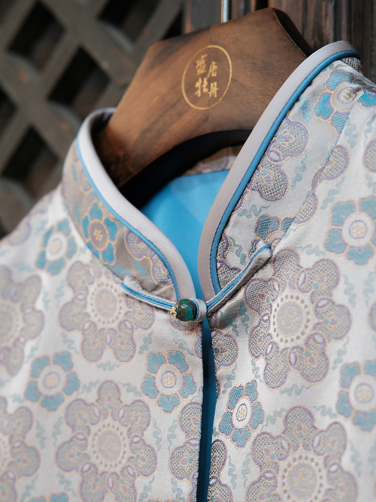 盛唐婧 |真丝宋锦回纹团花对襟马甲