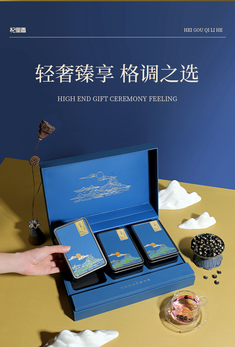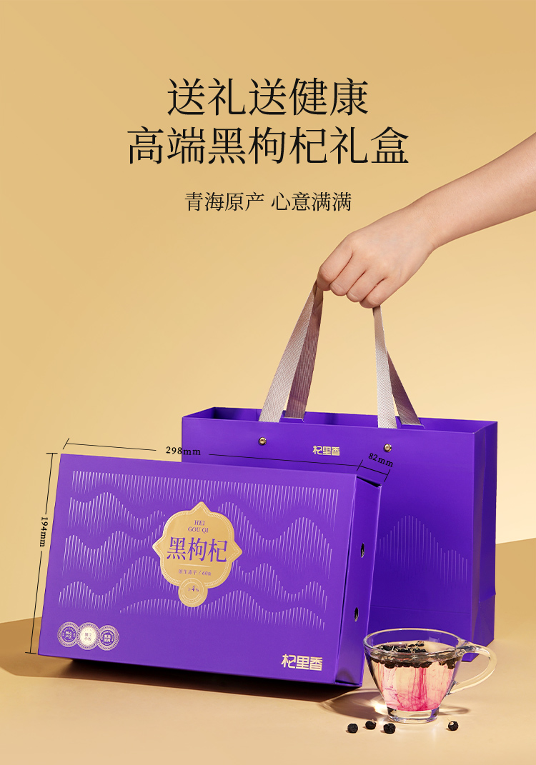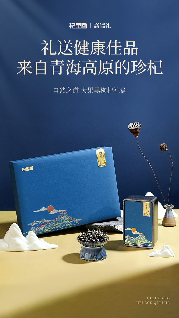 【冬季滋补】杞里香268g4罐礼盒装大果黑枸杞、108g12罐礼盒大果黑枸杞-五藏山经蓝,360g3罐礼盒黑枸杞大果-印象蓝色、180g60袋牛头果黑枸杞礼盒青海原产礼盒年货礼物便携装花青素释放
