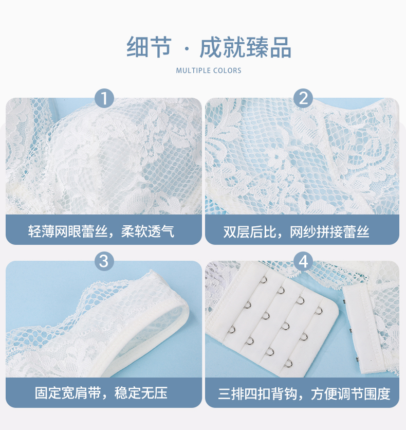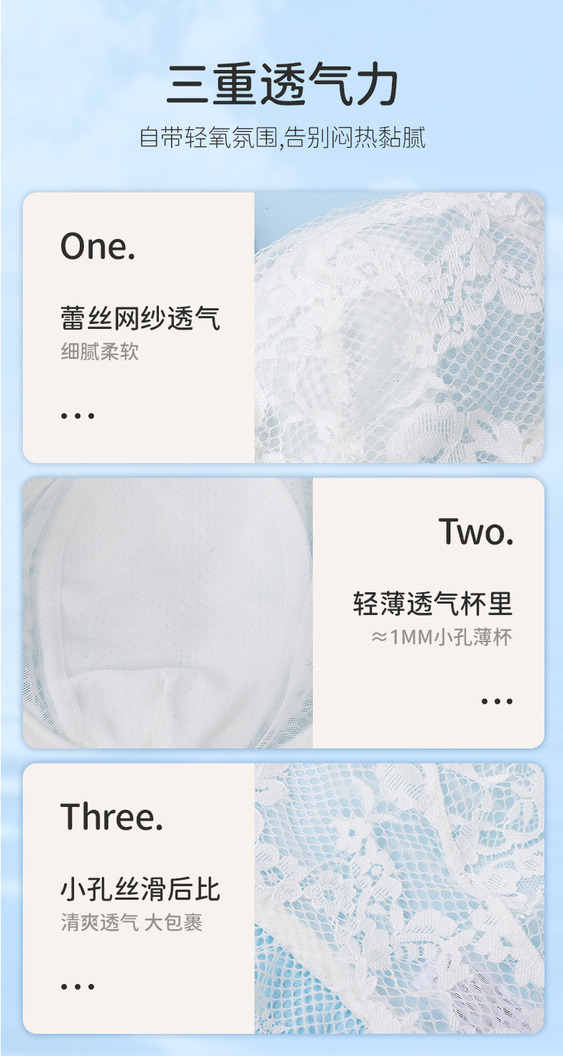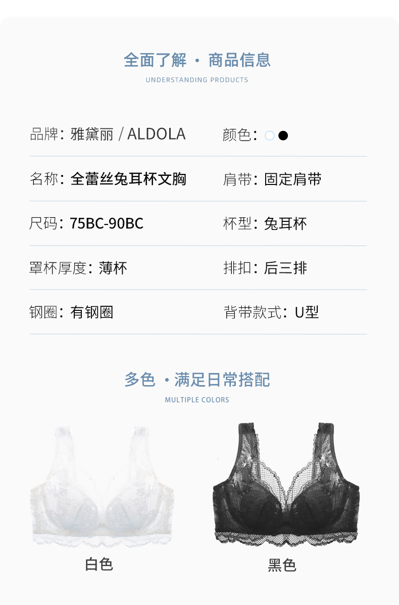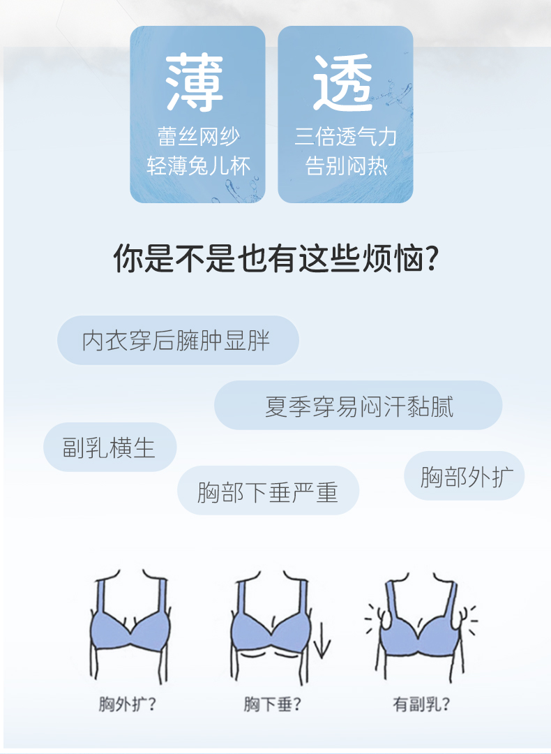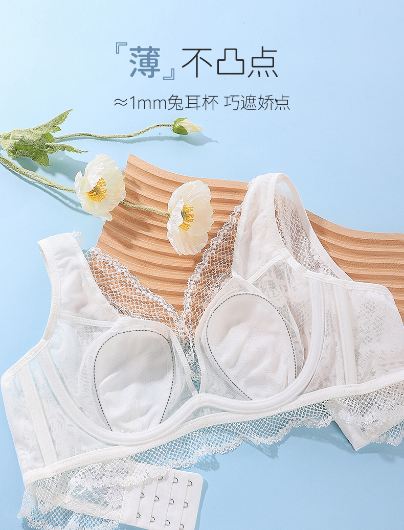 雅黛丽内衣女超薄兔耳杯夏薄款透气文胸收副乳防下垂性感蕾丝胸罩