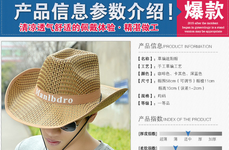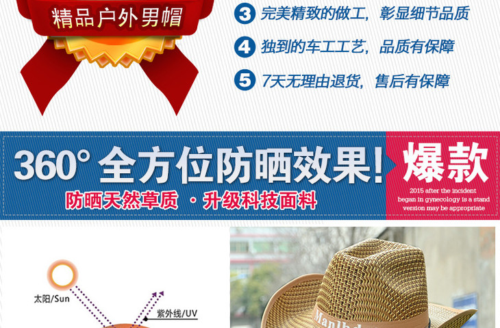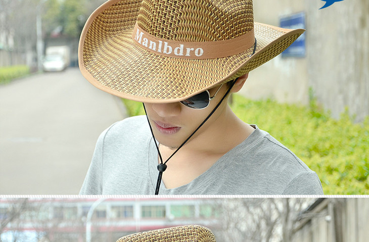 【户外运动】草帽子男士遮阳帽夏天防晒帽户外太阳帽大沿钓鱼帽大号沙滩帽