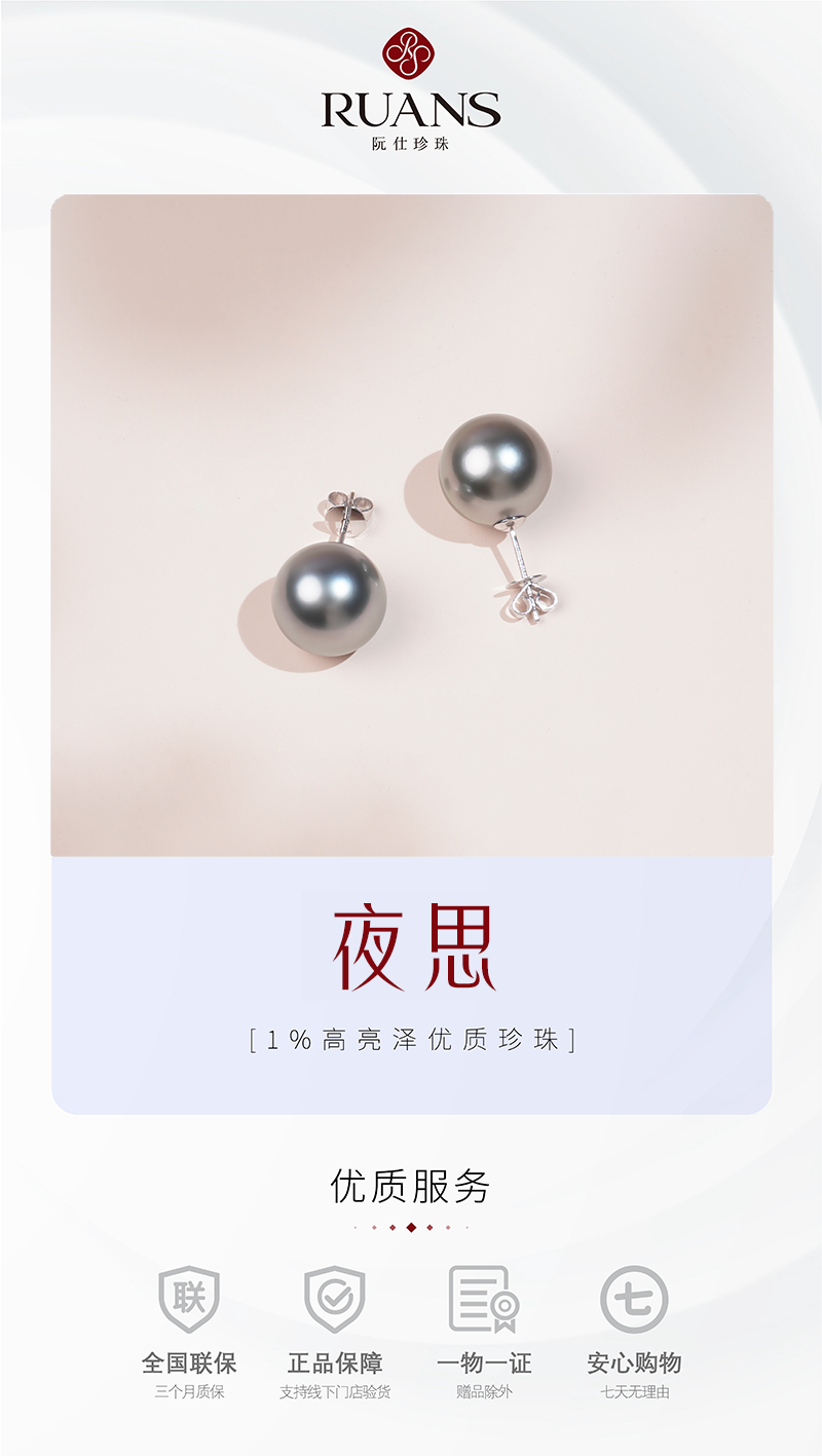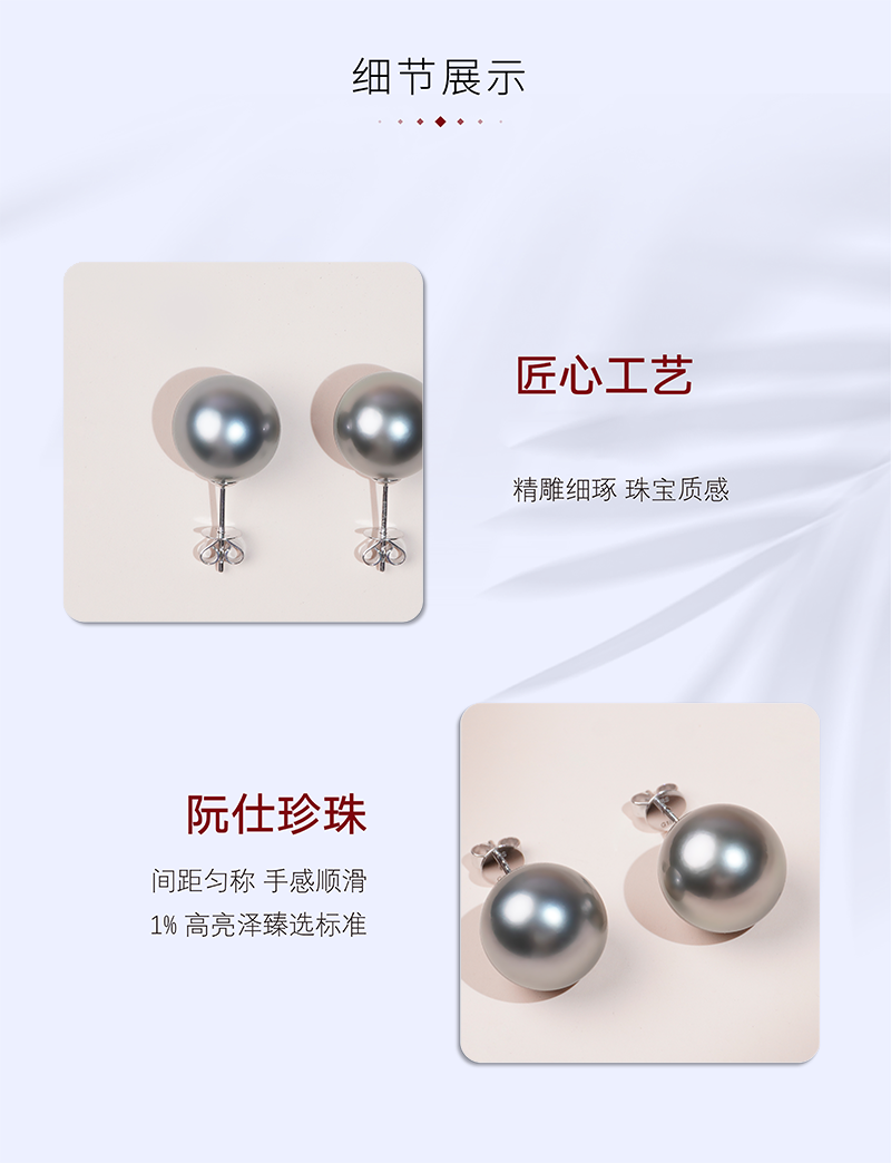 阮仕夜思系列 G18K金大溪地铂金灰珍珠耳饰 11.5-12mm EW11.5-12YSB