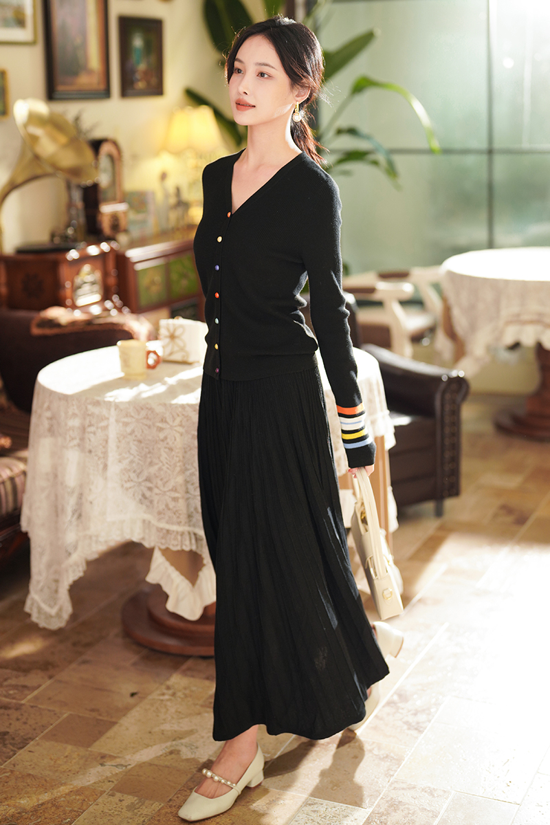 姐妹们,秋天是针织衫的主场,高级感针织开衫搭配高腰显瘦半身裙,一整套上身简约大方,气质高级有质感,舒适慵懒,随性自在,实穿耐看!