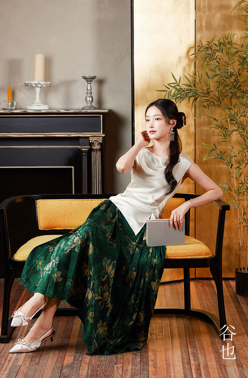 静止时如水墨画卷,动态时裙裾翻飞间透出丝绸特有的柔光,褪去繁复隆重感,沉淀为含蓄内敛的东方气质。