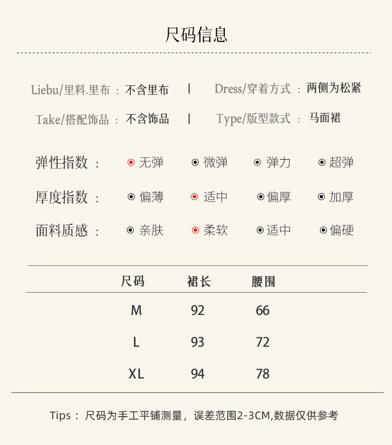 2.脚踝以上的中长款,不拖地又灵动,满足日常生活所需。