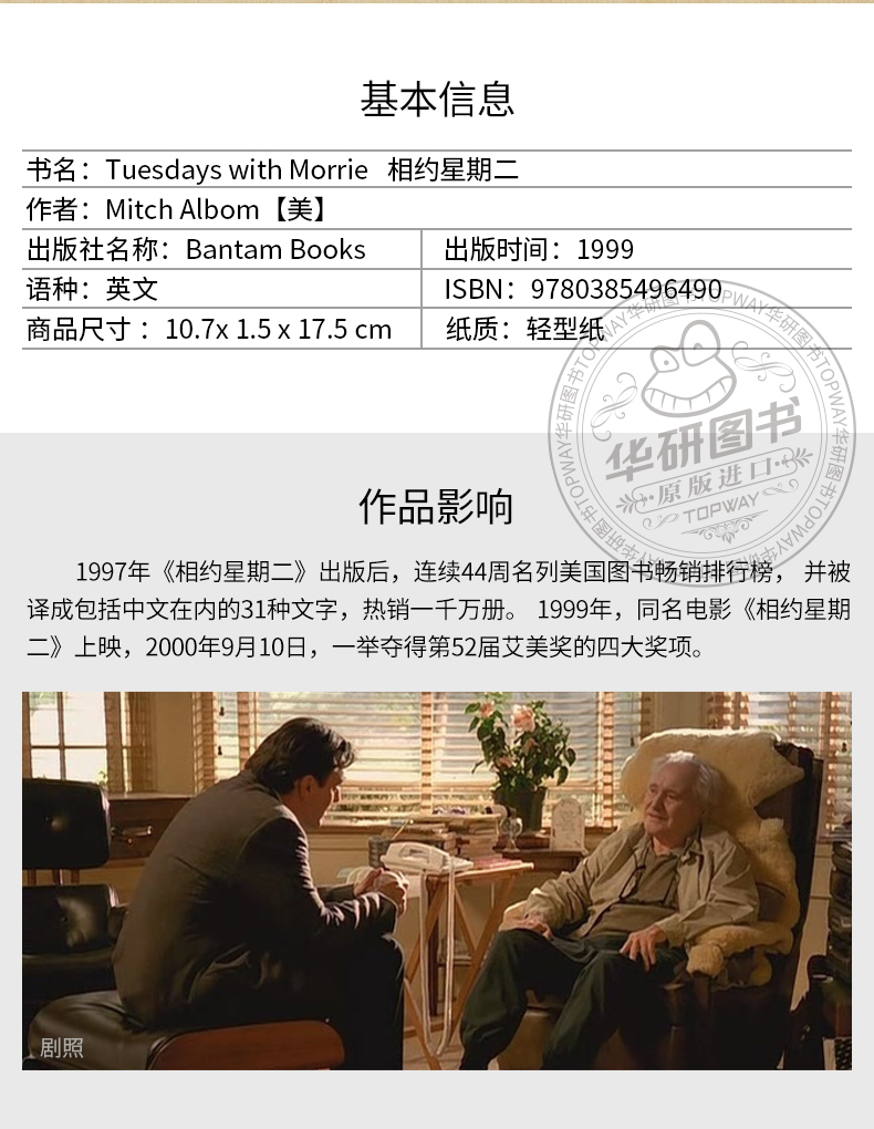 相约星期二英文原版小说 Tuesdays with Morrie 十四堂星期二的课 英语进口外文书籍搭怦然心动flipped奇迹男孩Wonder哈利波特