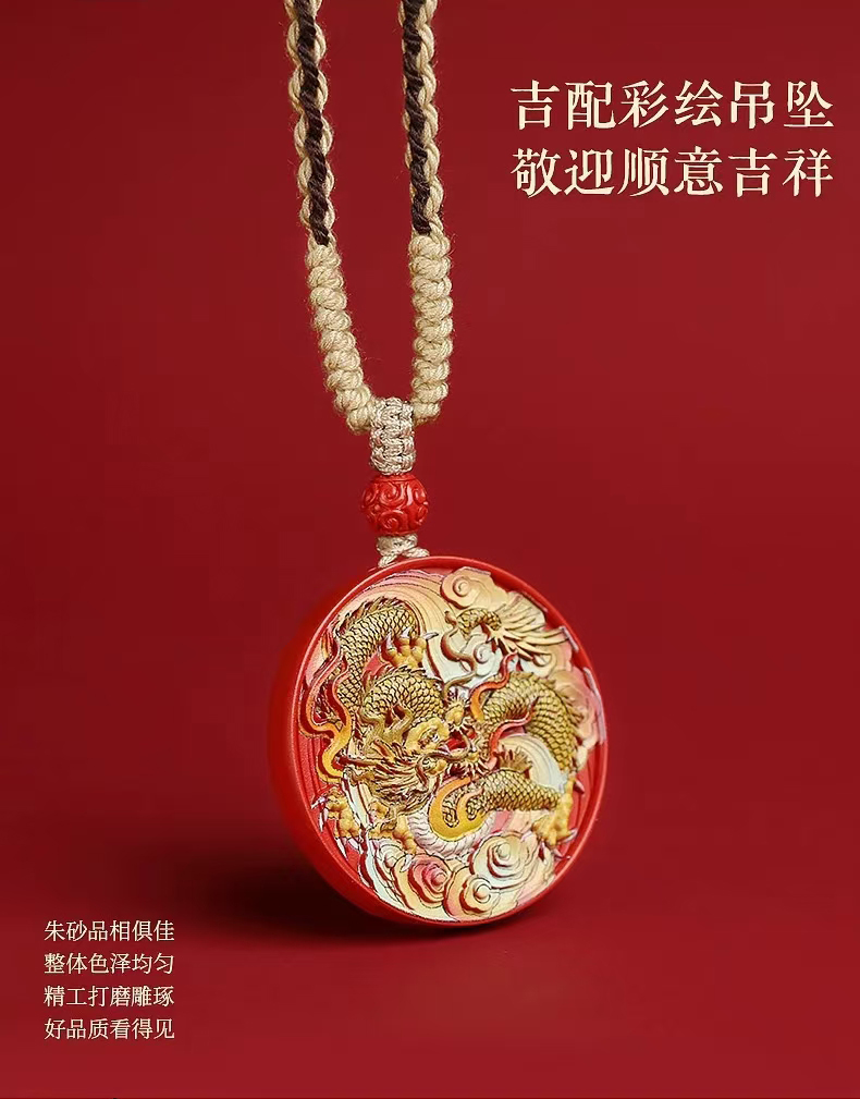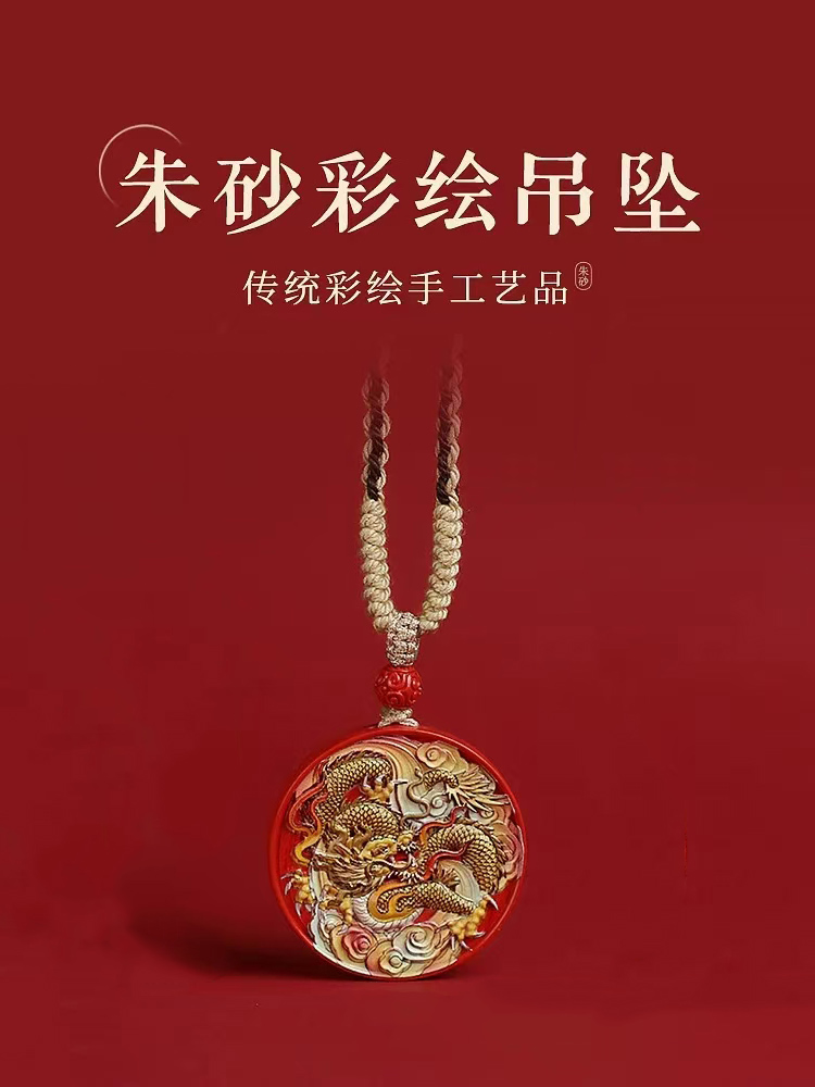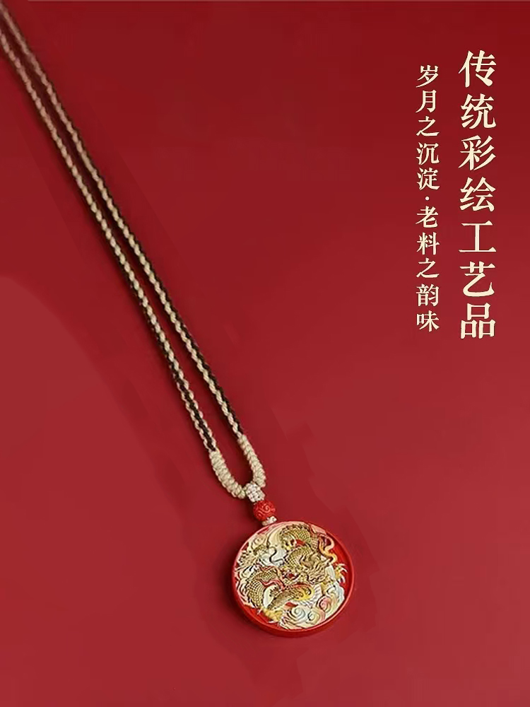 朱砂彩绘龙牌吊坠,传统工艺,顺义吉祥