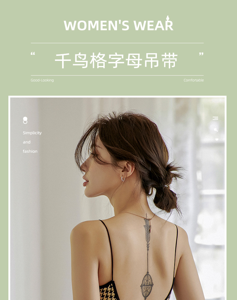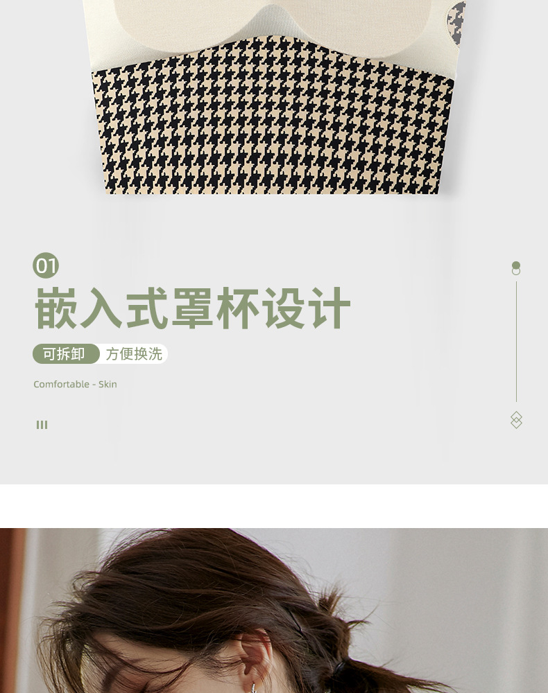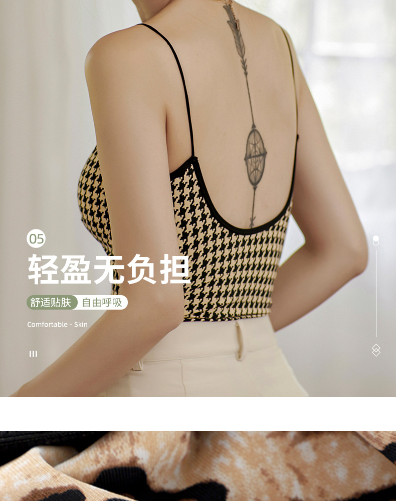 【第二件半价】千鸟格蚕丝吊带内衣 可外穿 可内搭 胸垫可拆卸