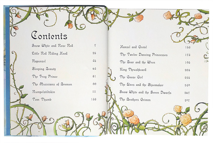 This is a wonderful collection of stories from the famous collectors of fairytales, "The Brothers Grimm". Stories include: "The Frog Prince", "Rapunzel", "Hansel and Gretel", "Little Red Riding Hood", "The Bremen Town Musicians", "Tom Thumb", "The Elves and the Shoemaker", "Sleeping Beauty", "Snow White and the Seven Dwarves", "Rumpelstiltskin", "The Goose Girl", "The Bear and the Wren", "The Twelve Dancing Princesses" and "Snow White and Rose Red". It also includes a short biography of the brothers themselves.