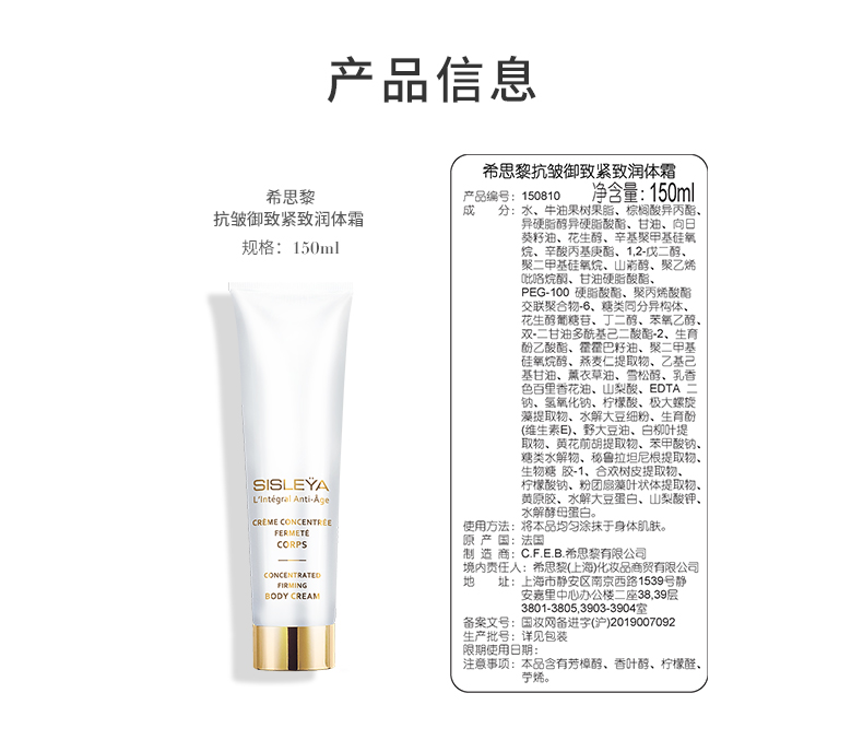 【1F】希思黎抗皱御致紧致润体乳150ml