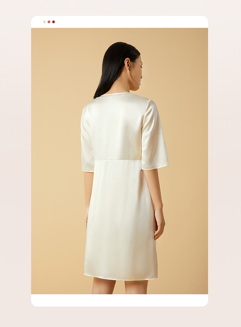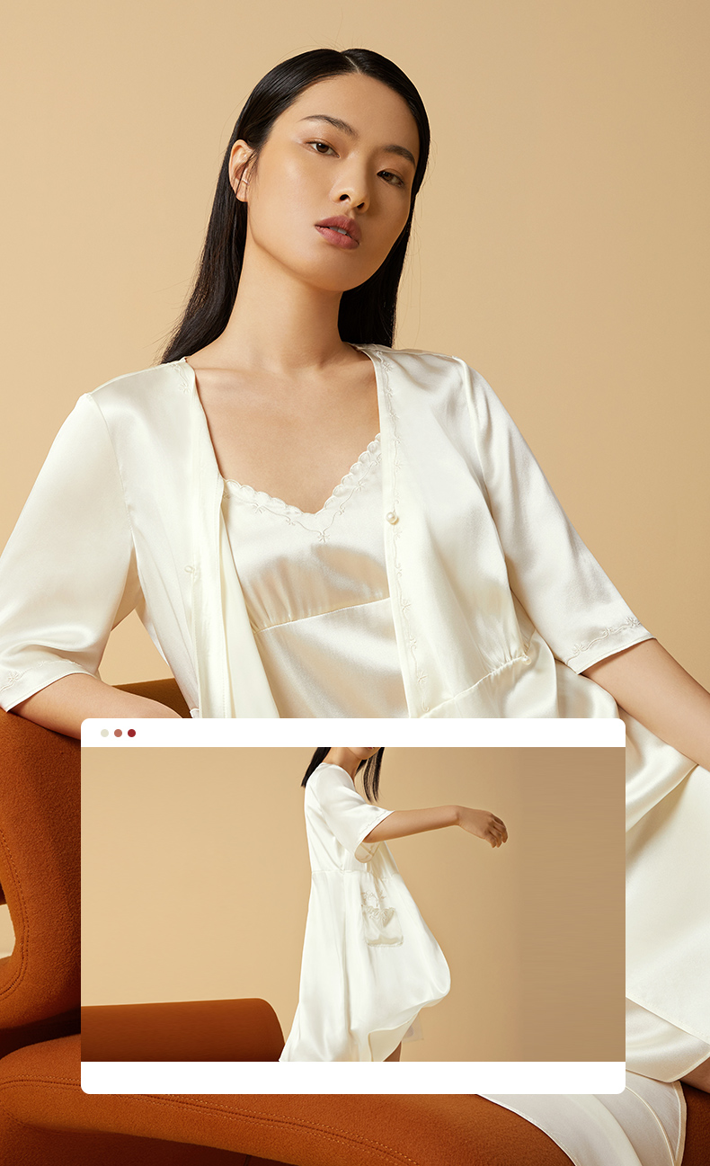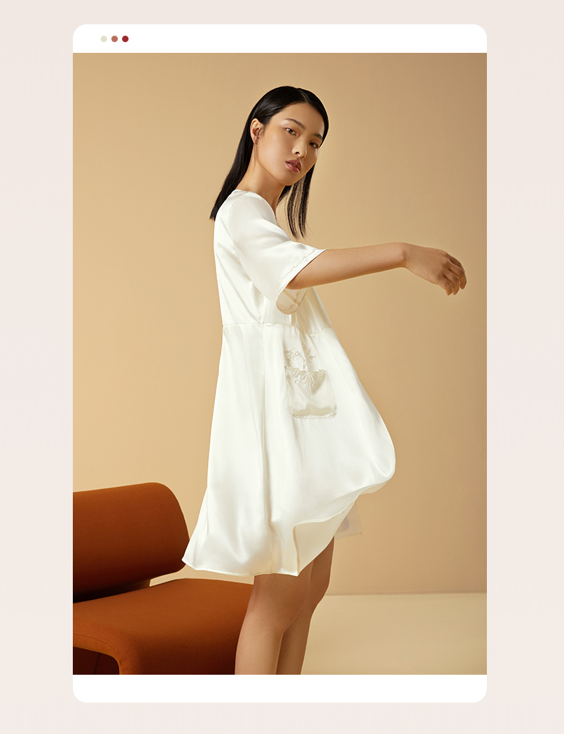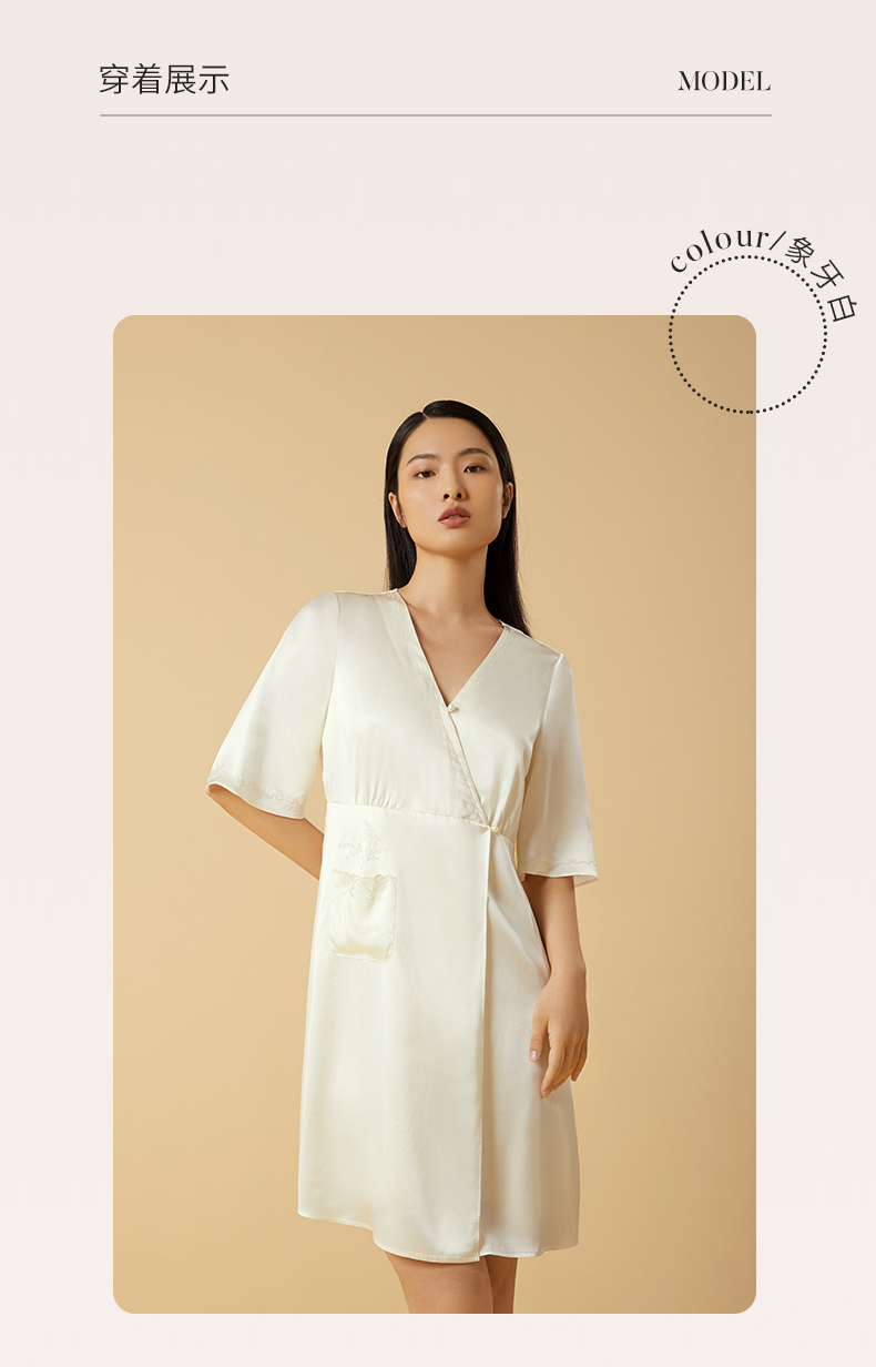 金三塔100%桑蚕丝重磅真丝花瓣绣包边纯欲风法式复古袍白色家居服 YSFCB101