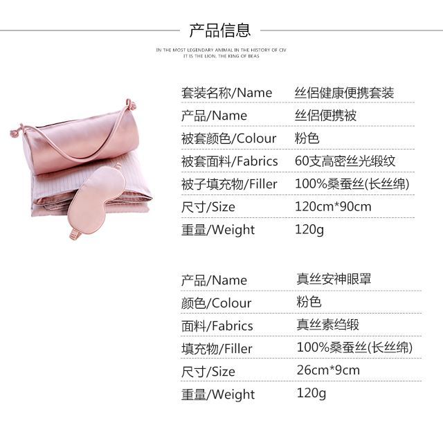 (永久下架)【丝侣套装】 健康便携蚕丝被+真丝眼罩(粉色款)