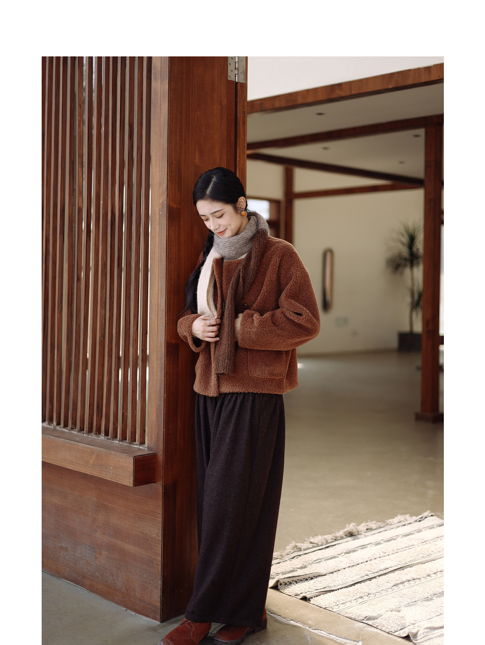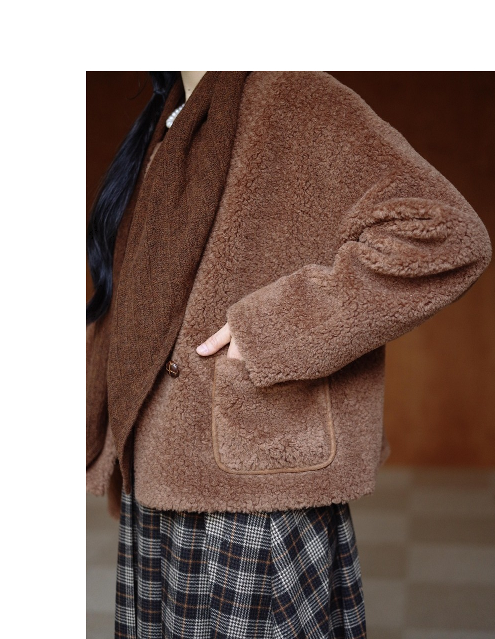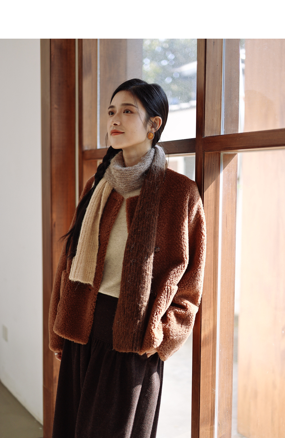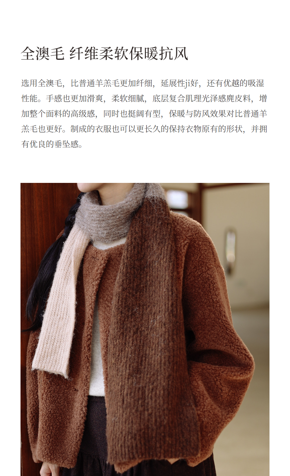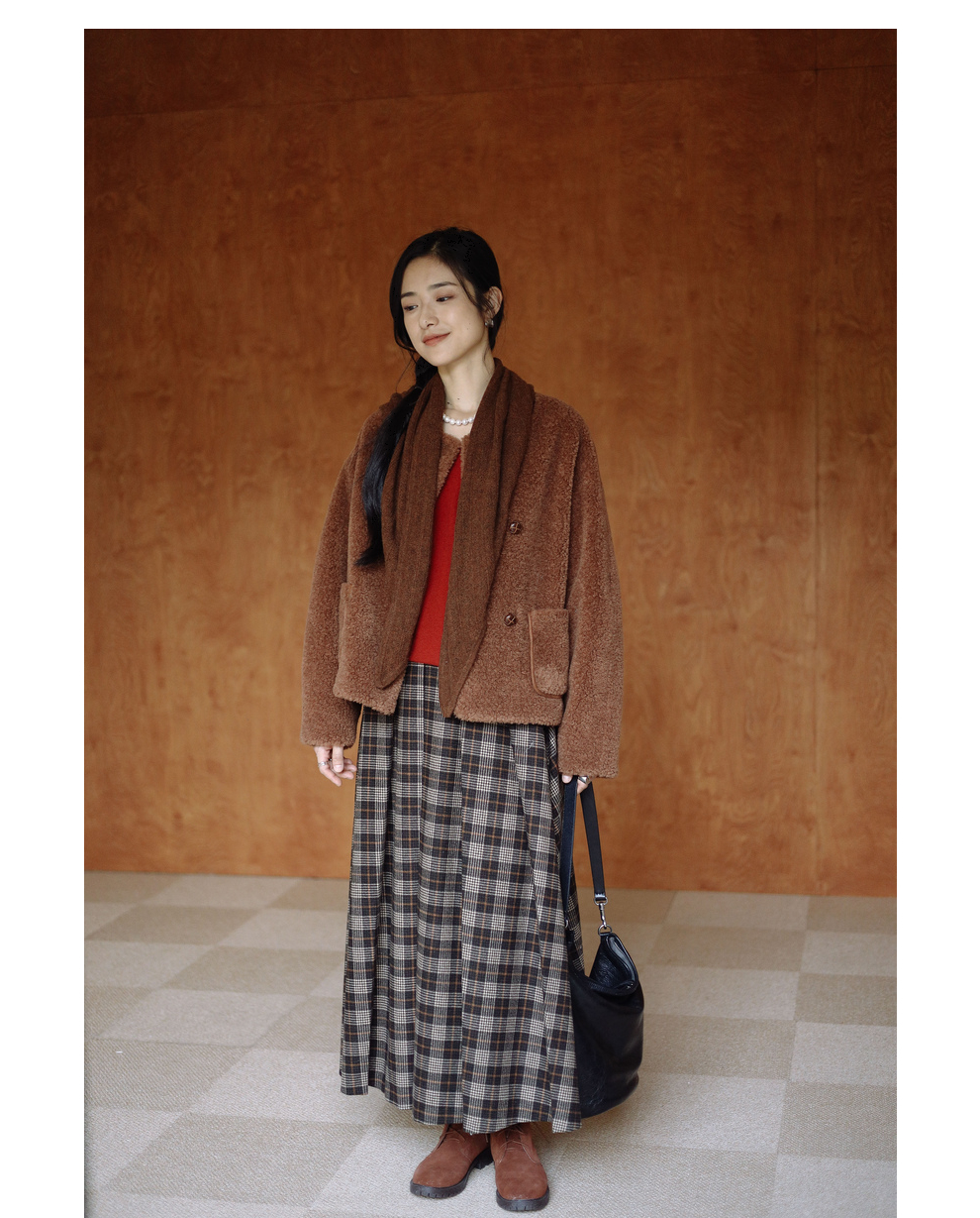 绽放932朵/2023冬季新款焦糖色全澳毛香蕉袖型设计感羊羔毛外套