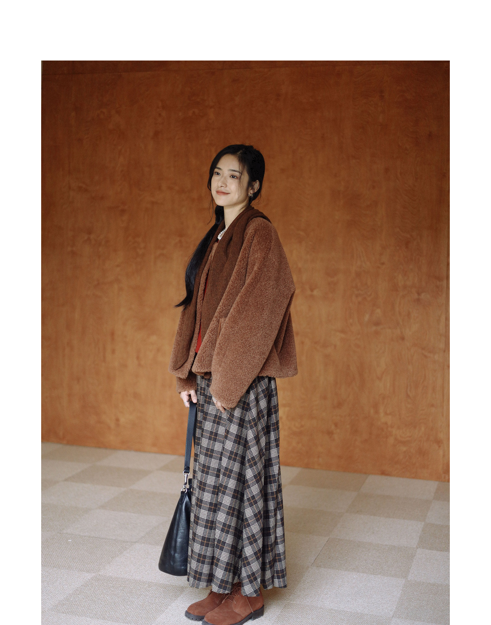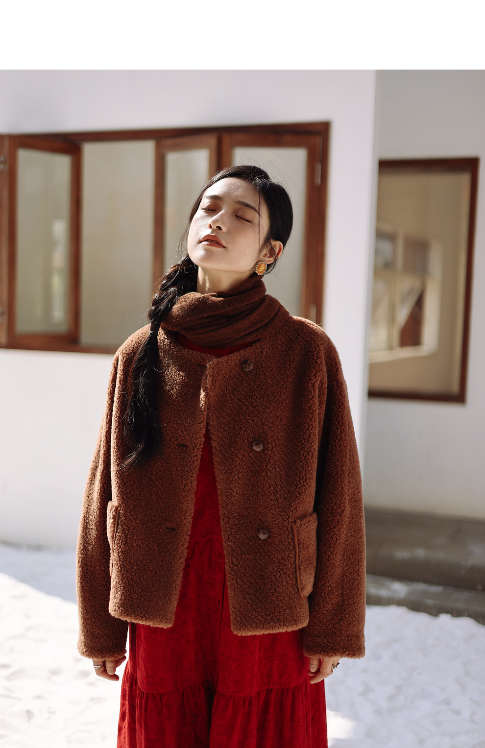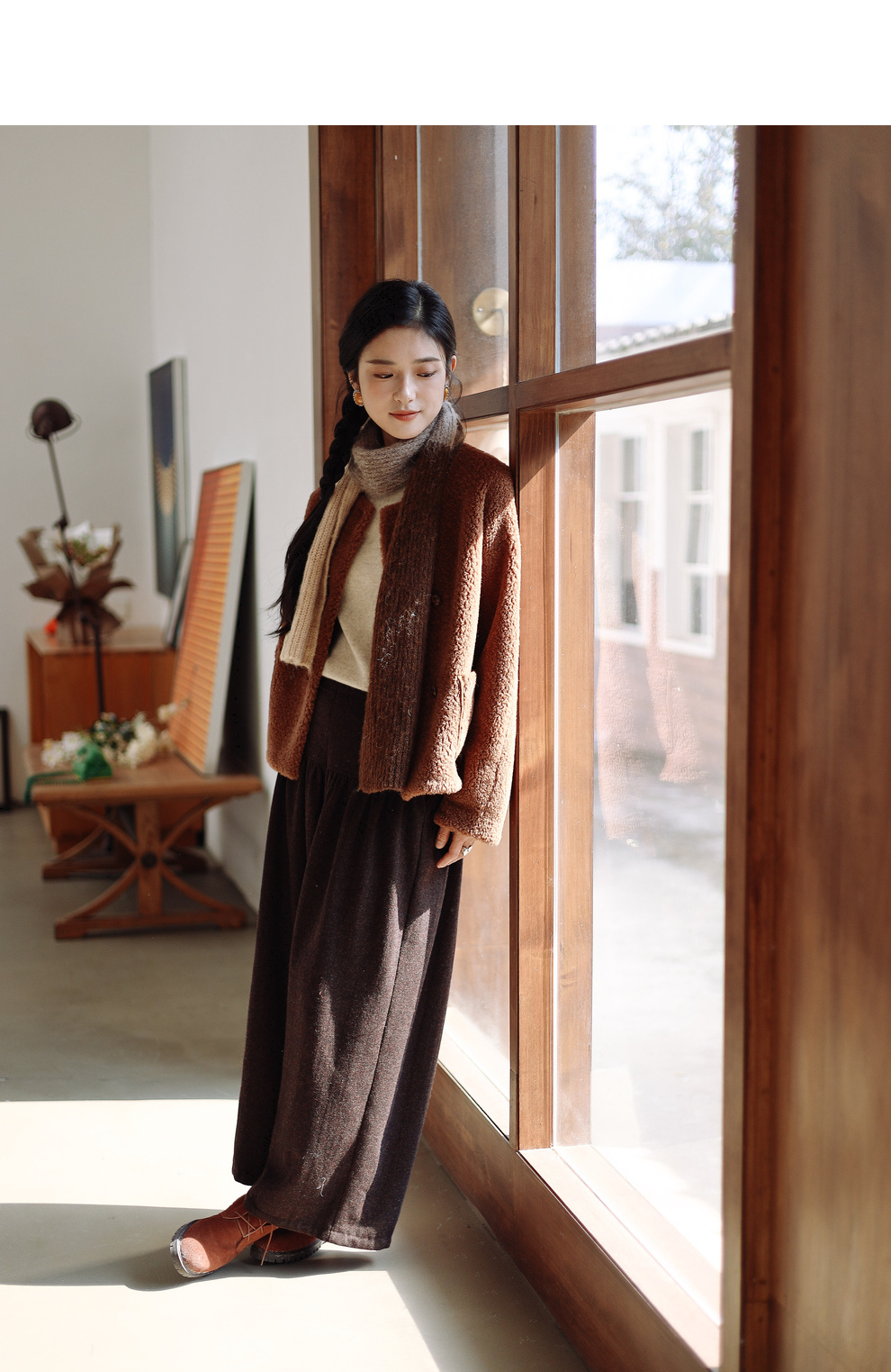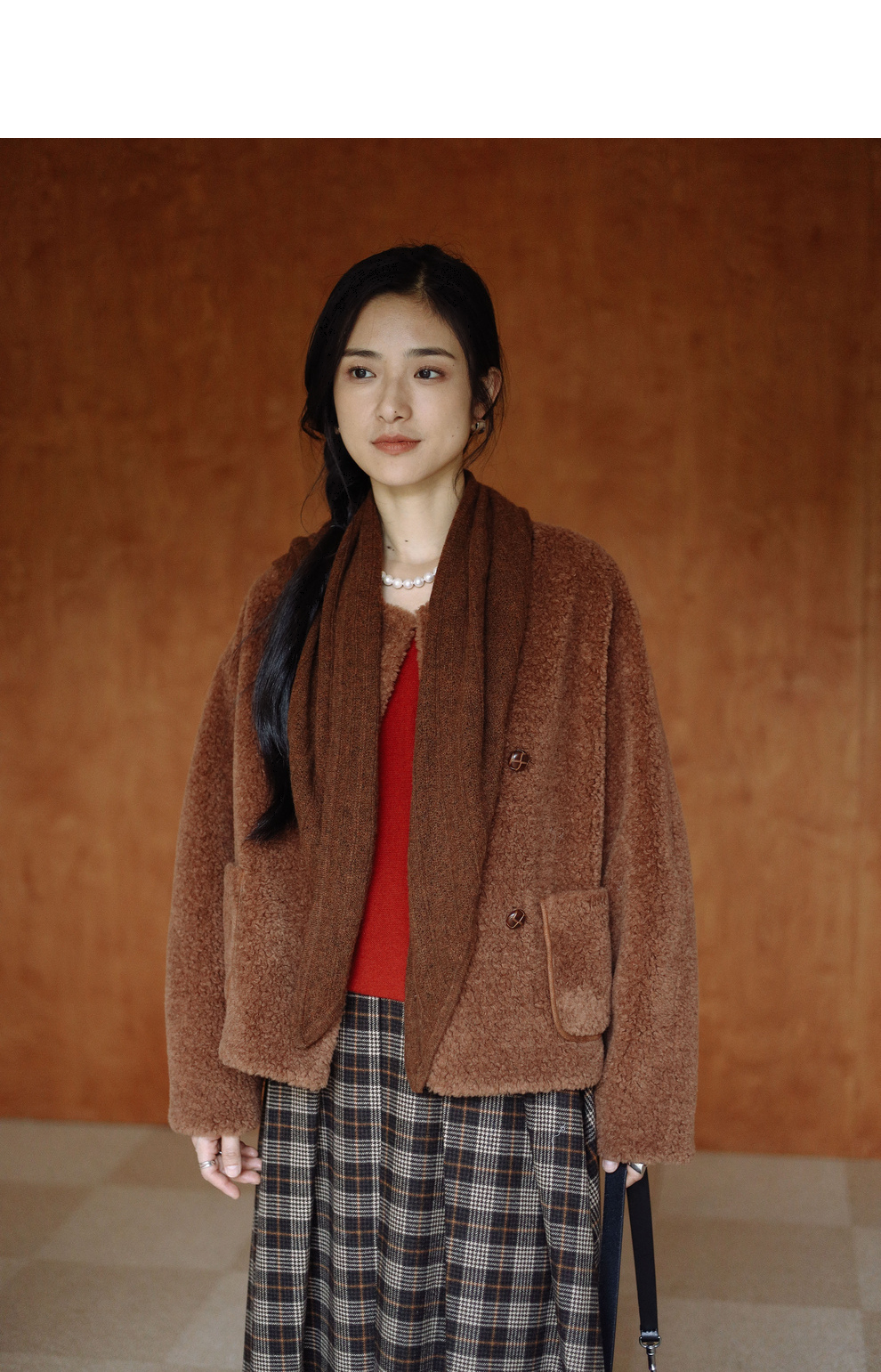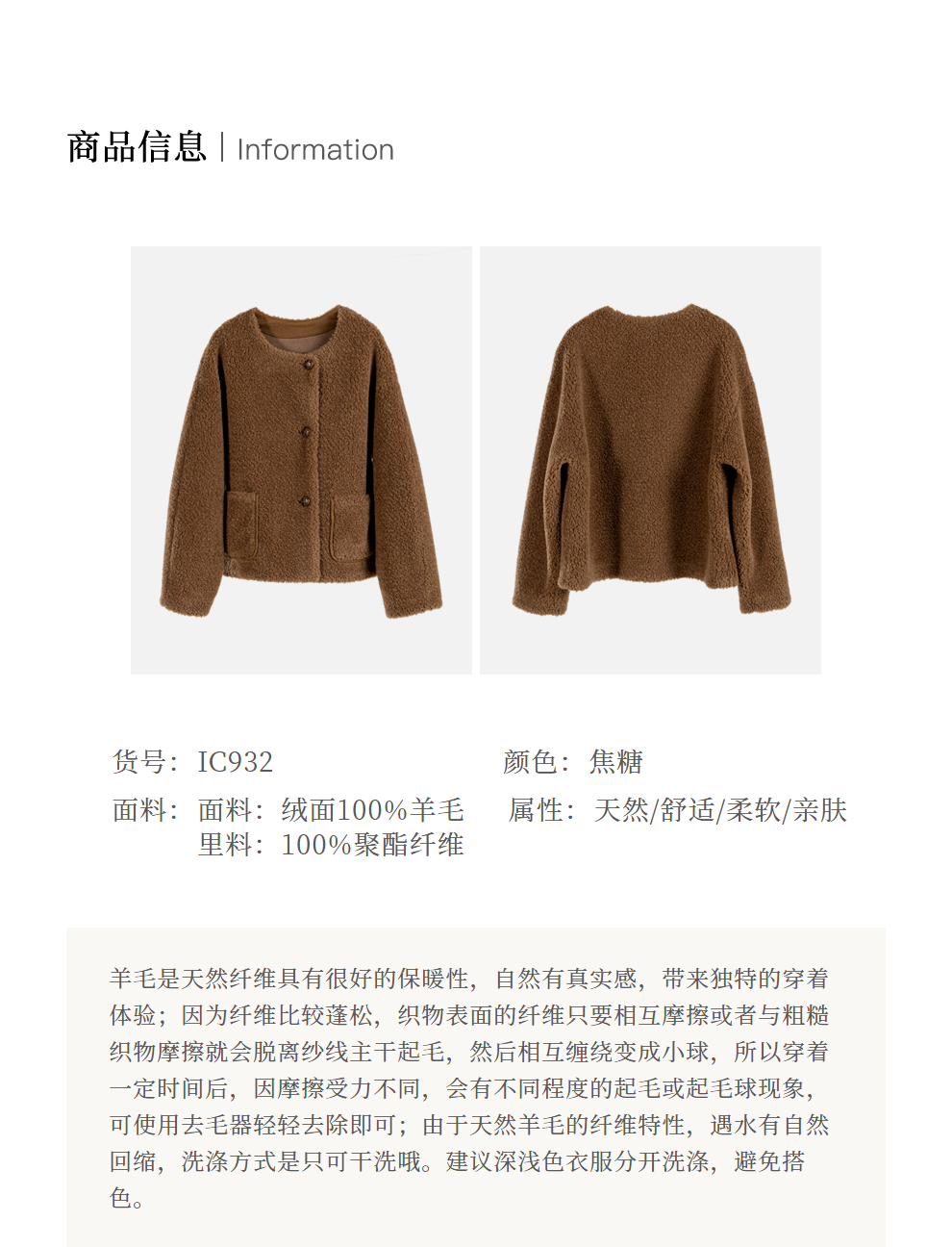绽放932朵/2023冬季新款焦糖色全澳毛香蕉袖型设计感羊羔毛外套