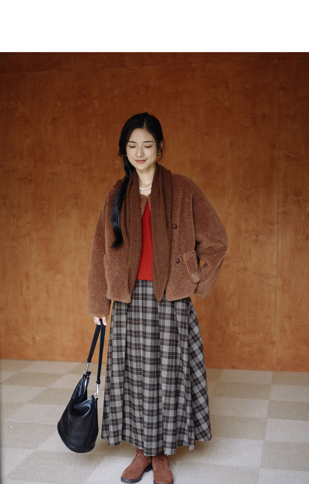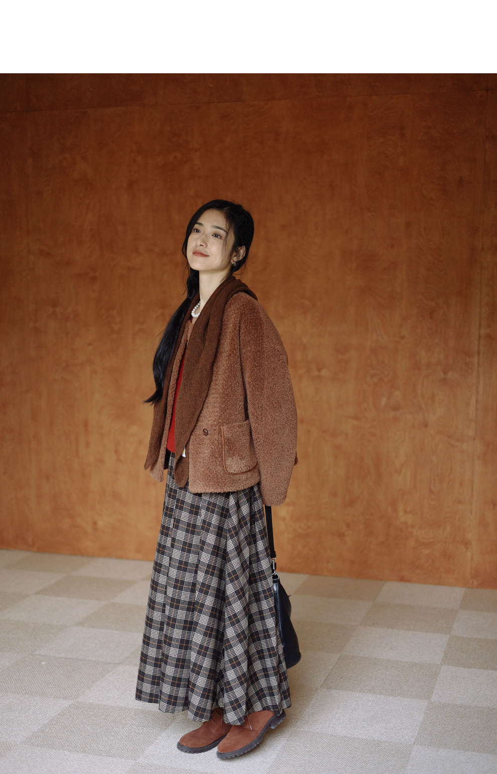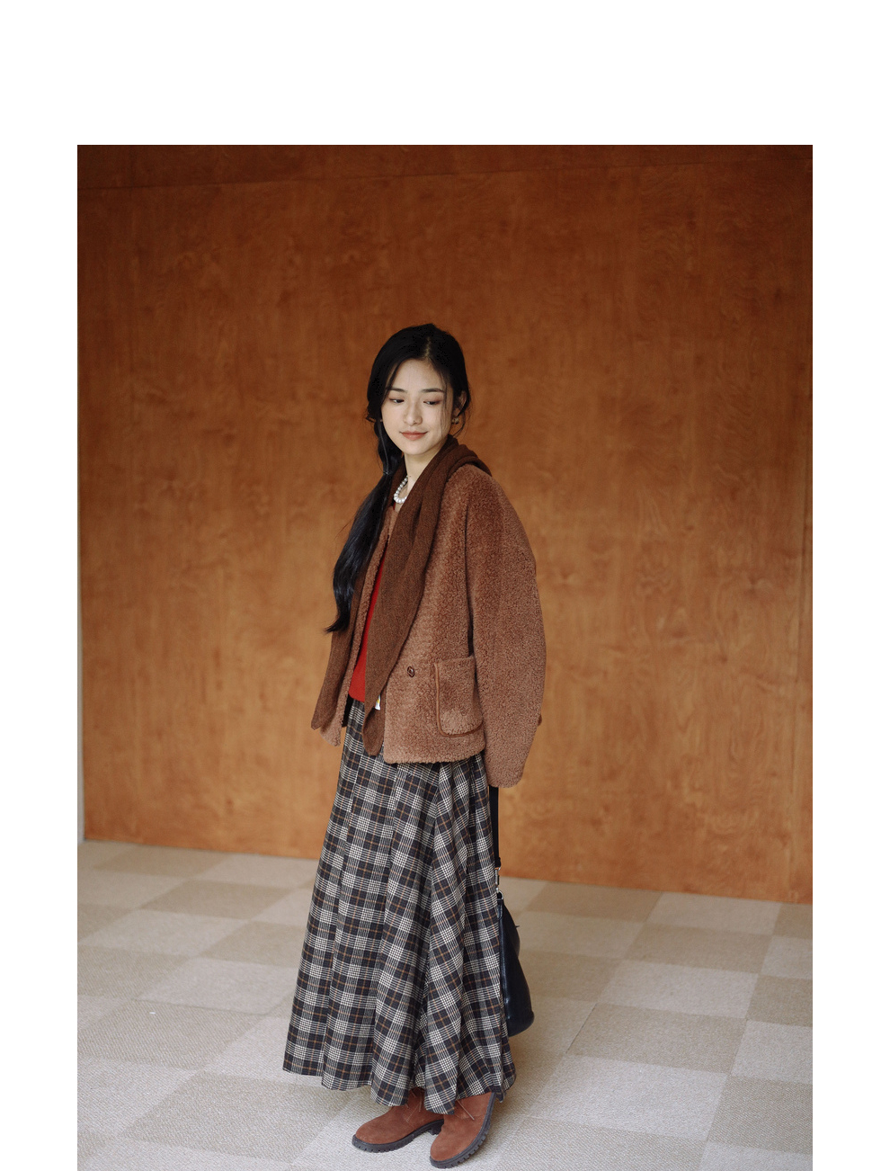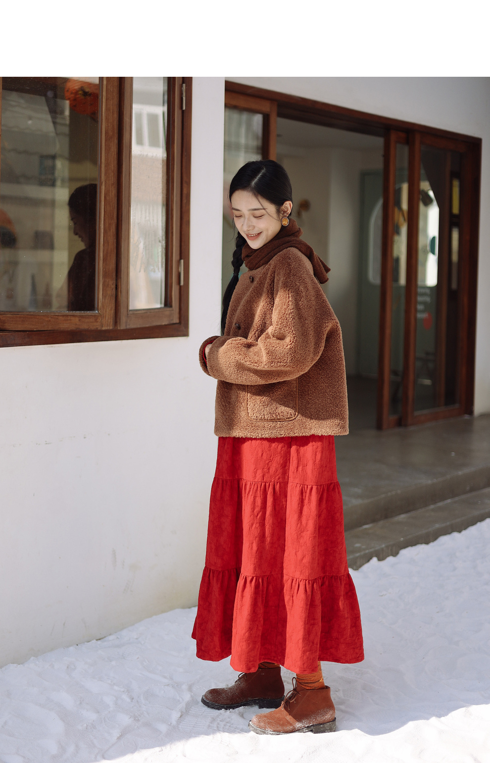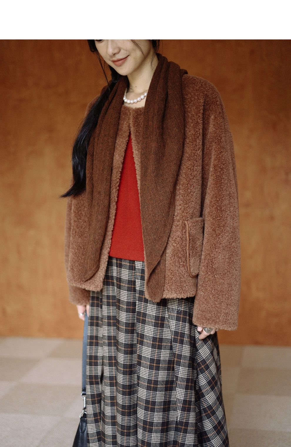 绽放932朵/2023冬季新款焦糖色全澳毛香蕉袖型设计感羊羔毛外套