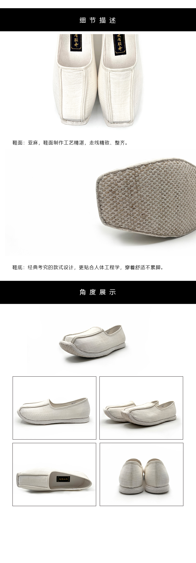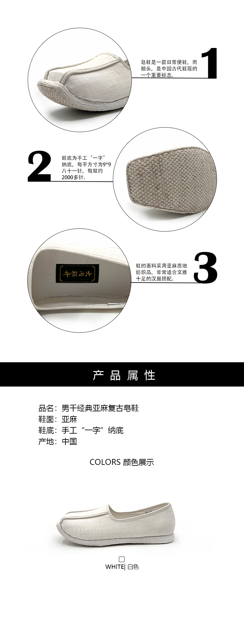 内联升男鞋手工单鞋千层底经典亚麻复古皂鞋DN8515