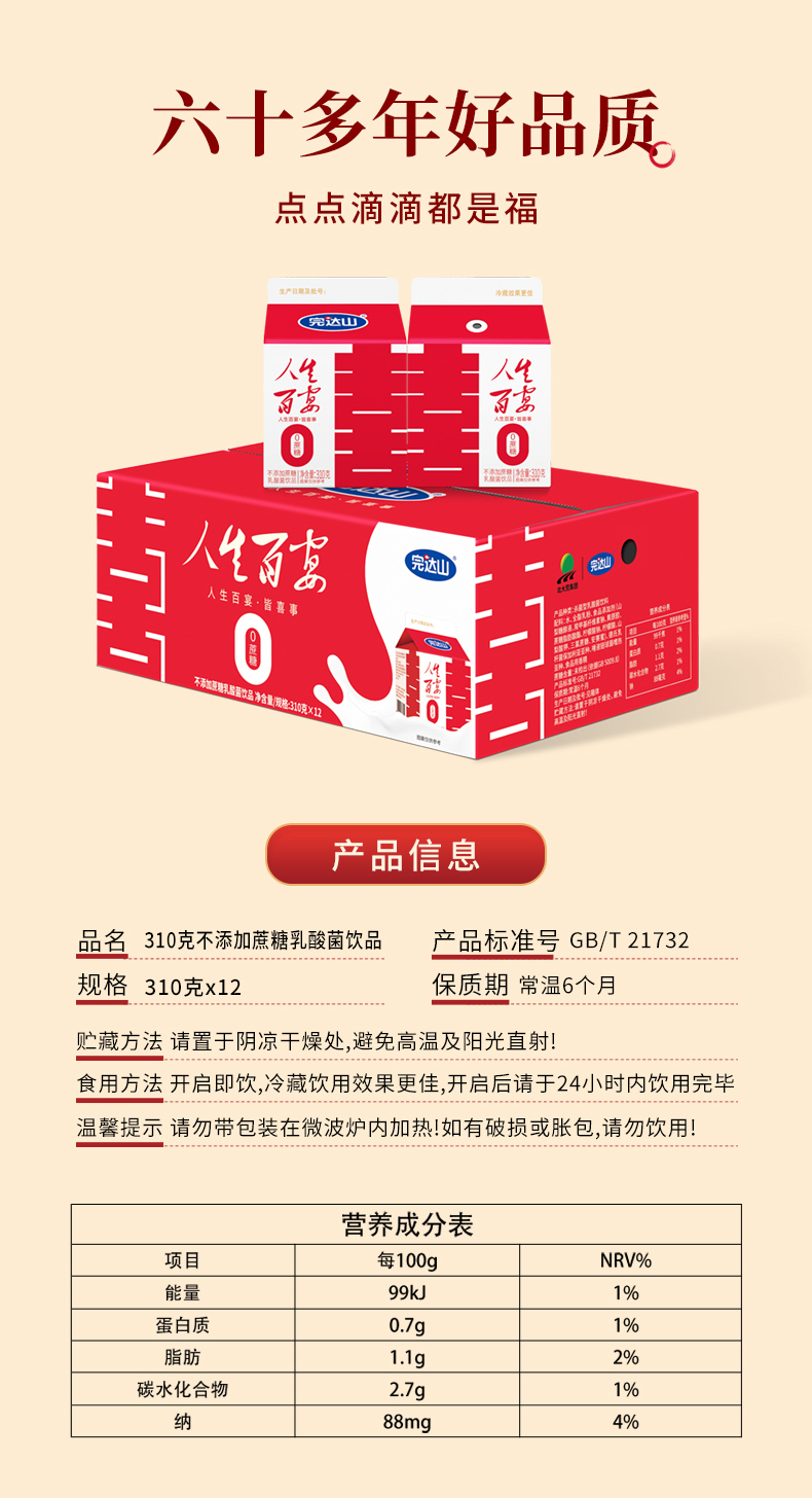 完达山人生百宴不添加蔗糖乳酸菌饮品