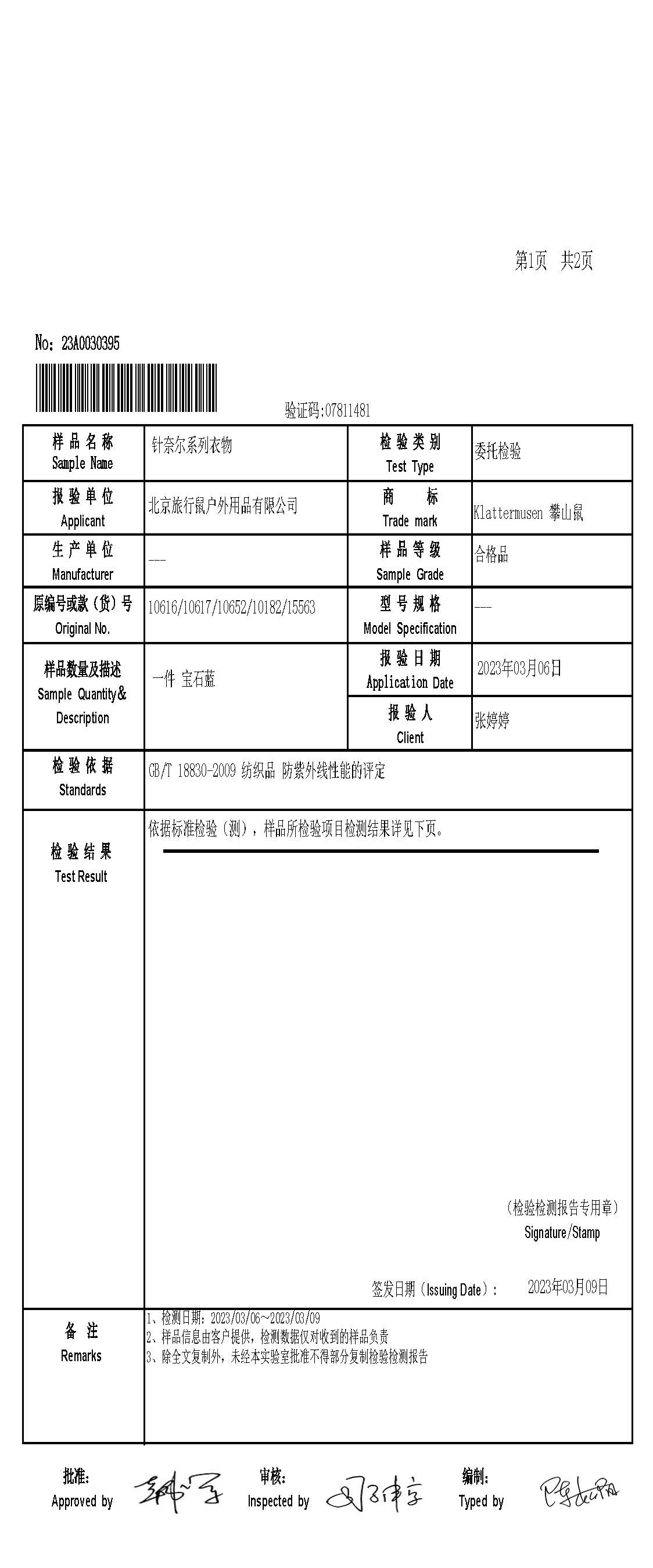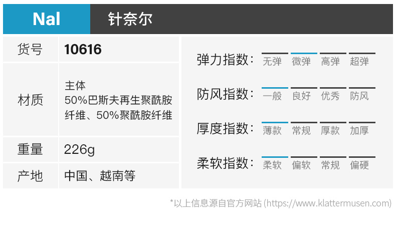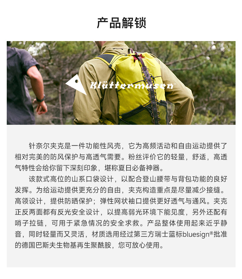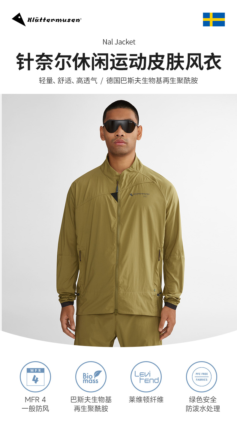 KLATTERMUSEN/攀山鼠针奈尔薄款防晒运动风衣弹力夹克外套10616M