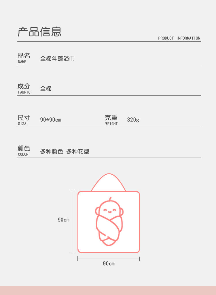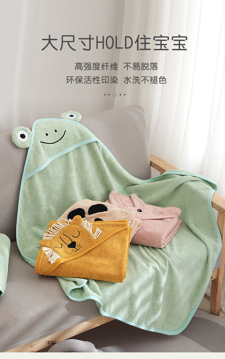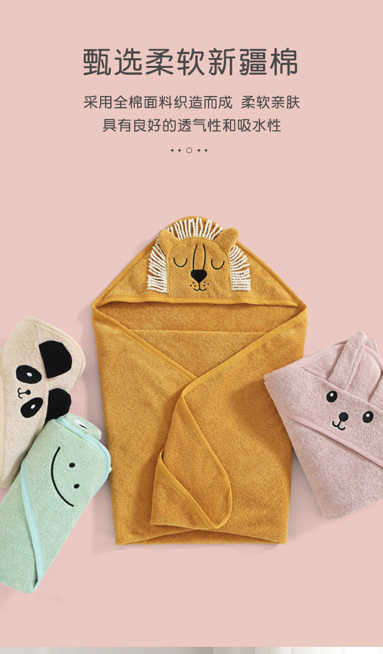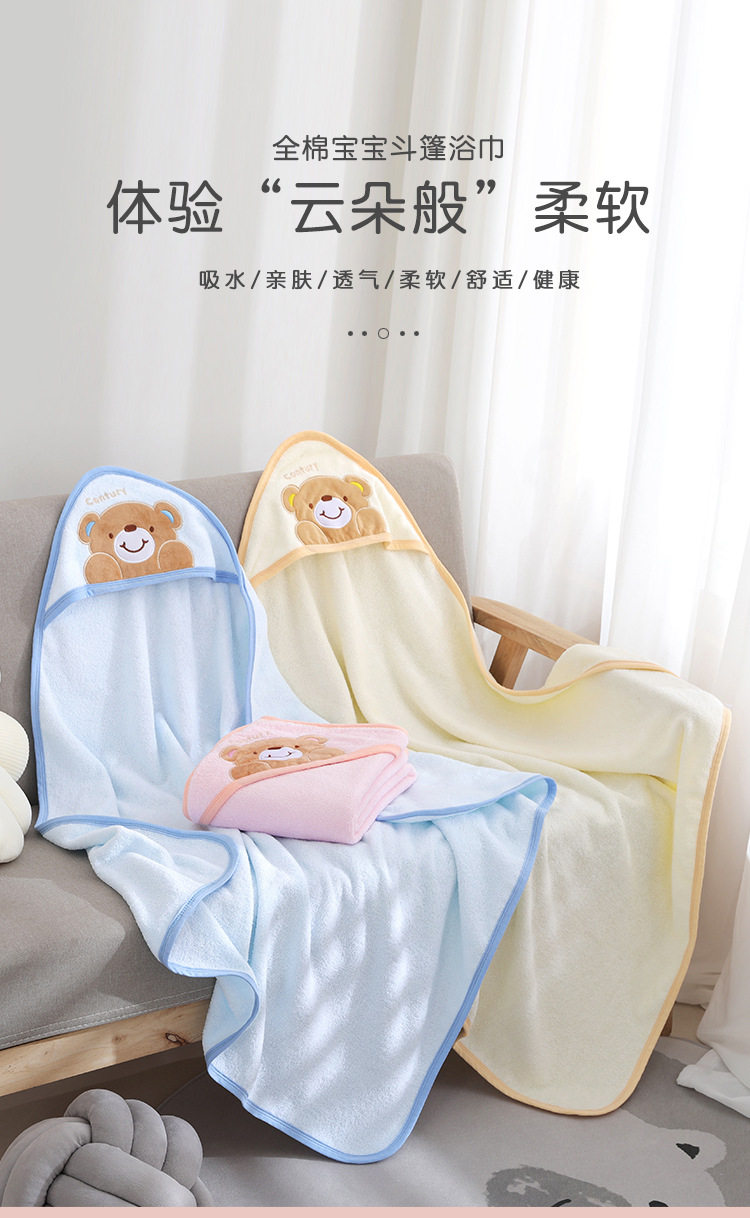 婴儿浴巾纯棉32股不掉毛带帽斗篷外贸新生儿童吸水连帽宝宝抱被