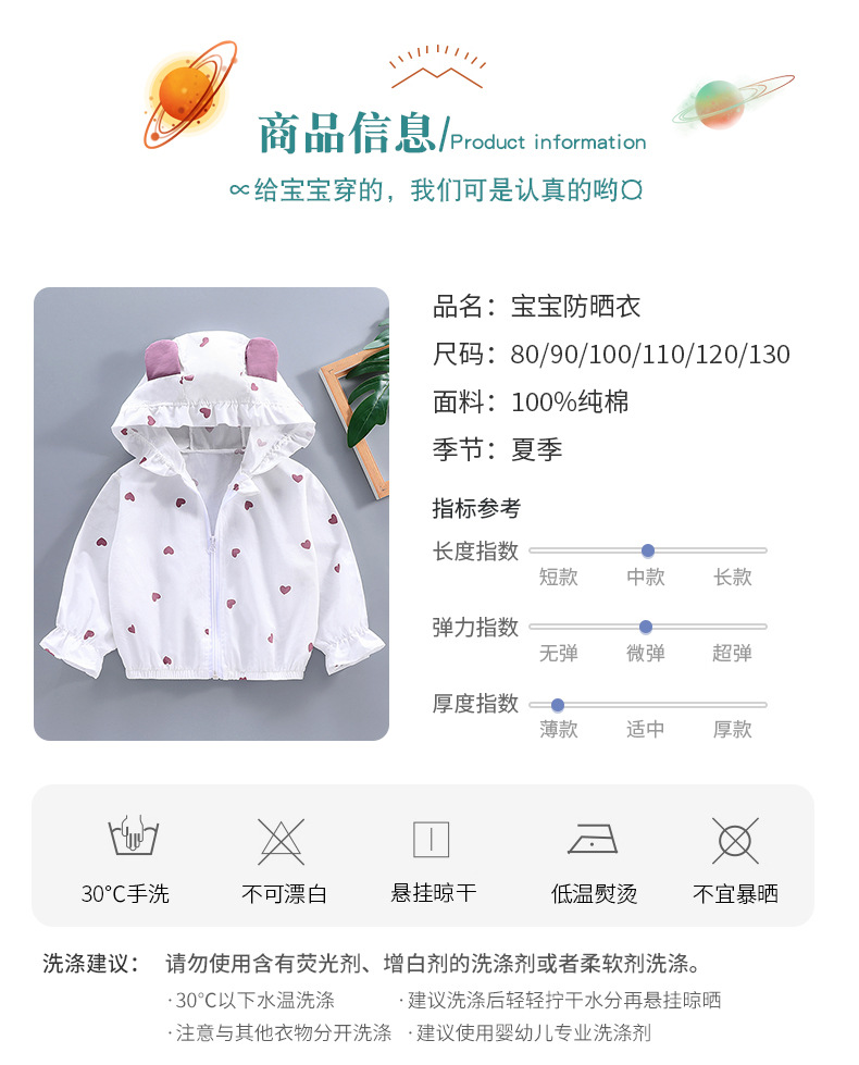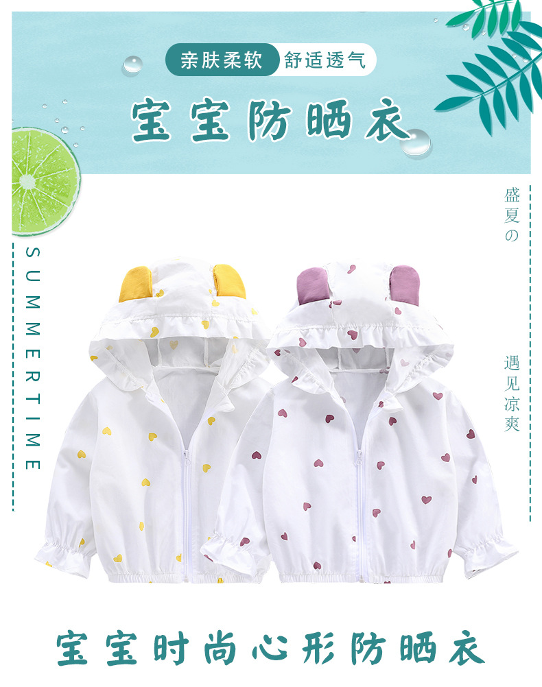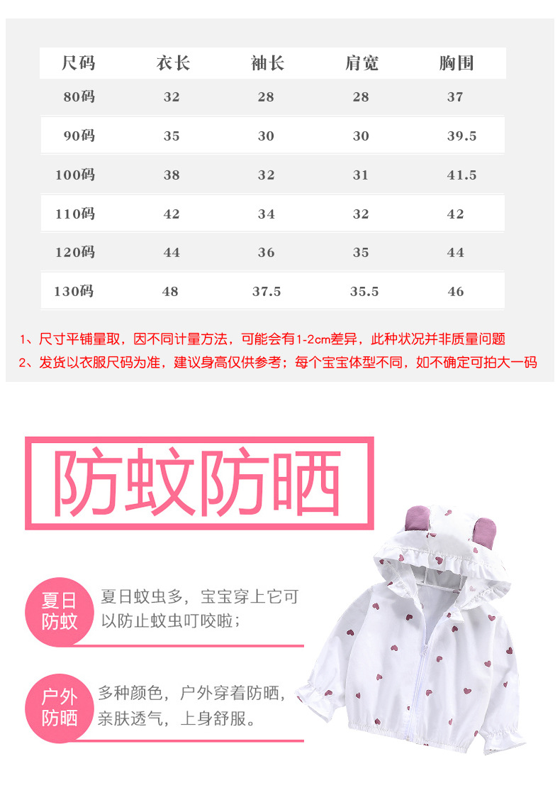 【宝宝时尚心型防晒防蚊衣】女童秋季外套新款儿童防晒衣秋装空调衫女宝轻薄上衣外穿外套