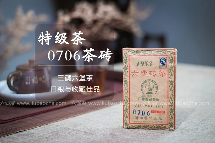 三鹤0706是2007年出厂半斤砖,为早期原料制作,陈化年份早于2007年,是一款“三鹤牌”过渡“三鹤”时期茶品,产量少、特色明显。经10几20年陈化,因发酵度轻,入口还有微微涩感,但它与新茶收敛型的青涩较为不同;整体呈现优雅兰香、入口醇和、鲜爽有活性。