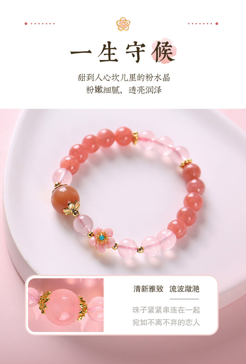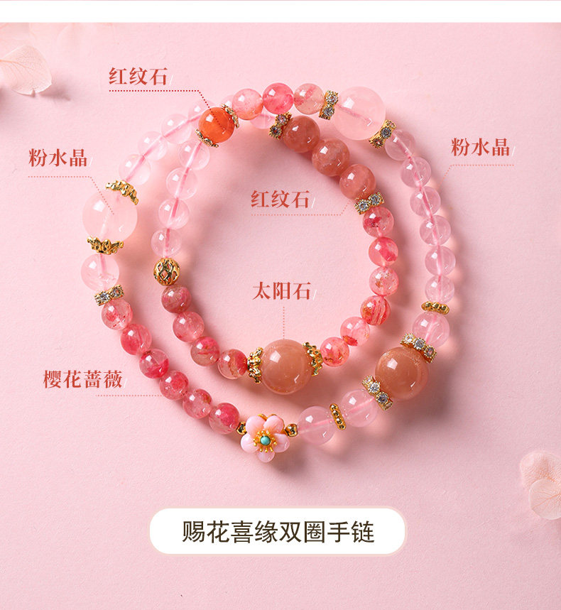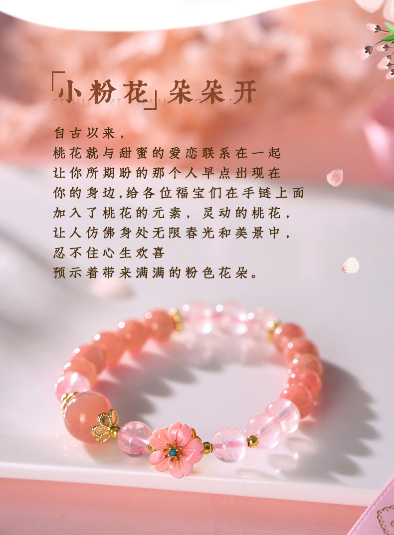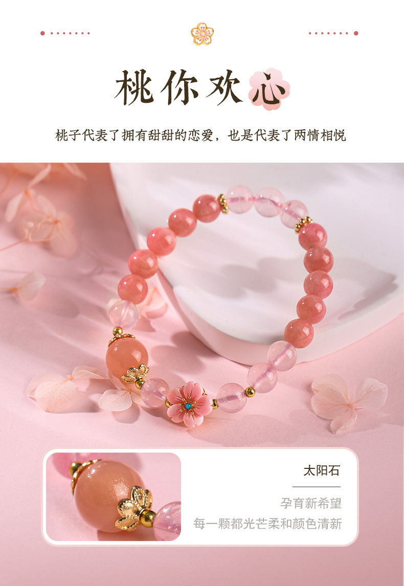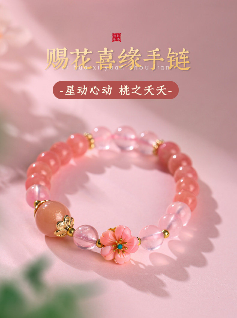 【祈愿吉品】【赐花喜缘】桃花红纹石手链女桃之夭夭心动粉澳宝手串