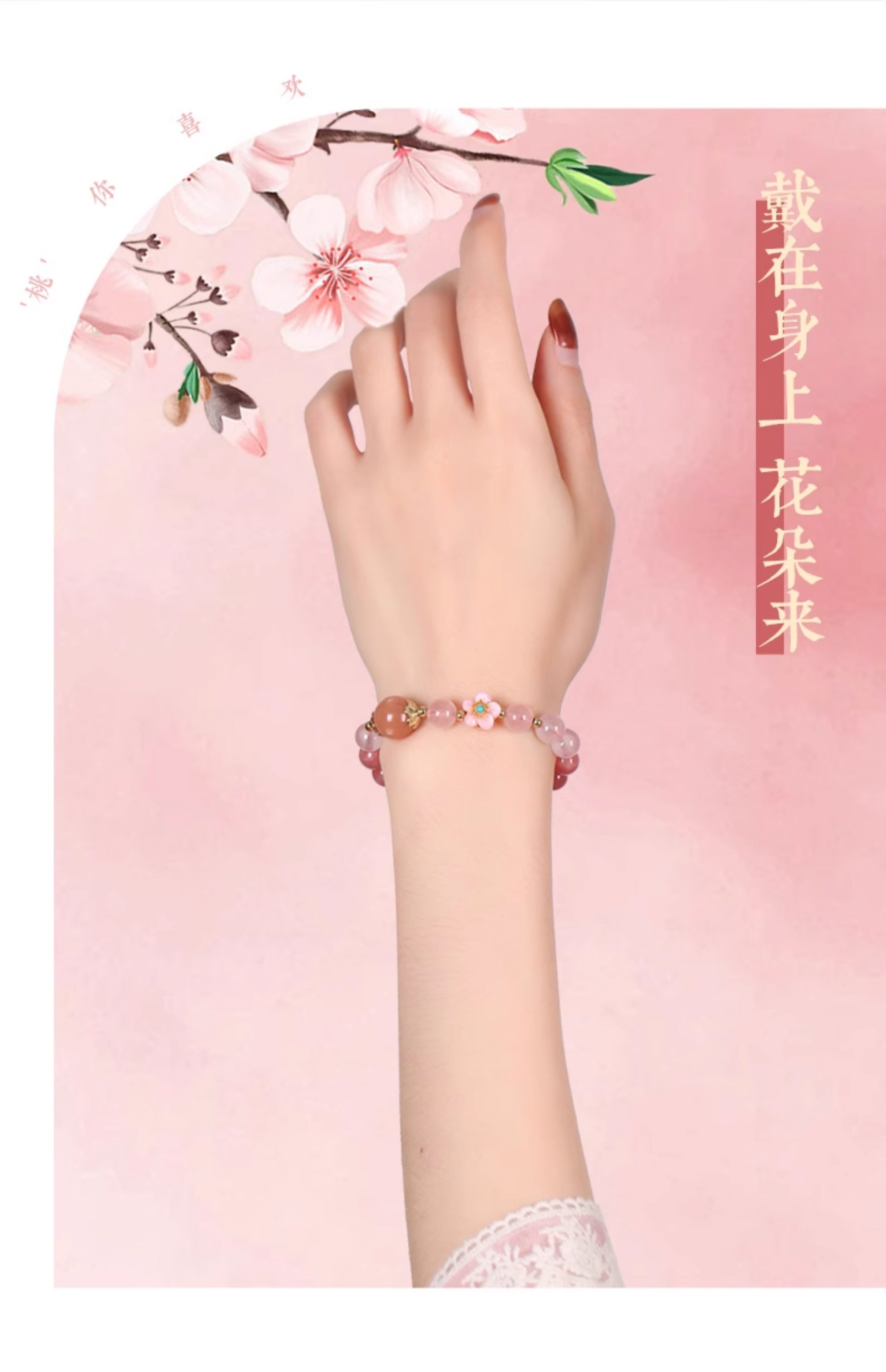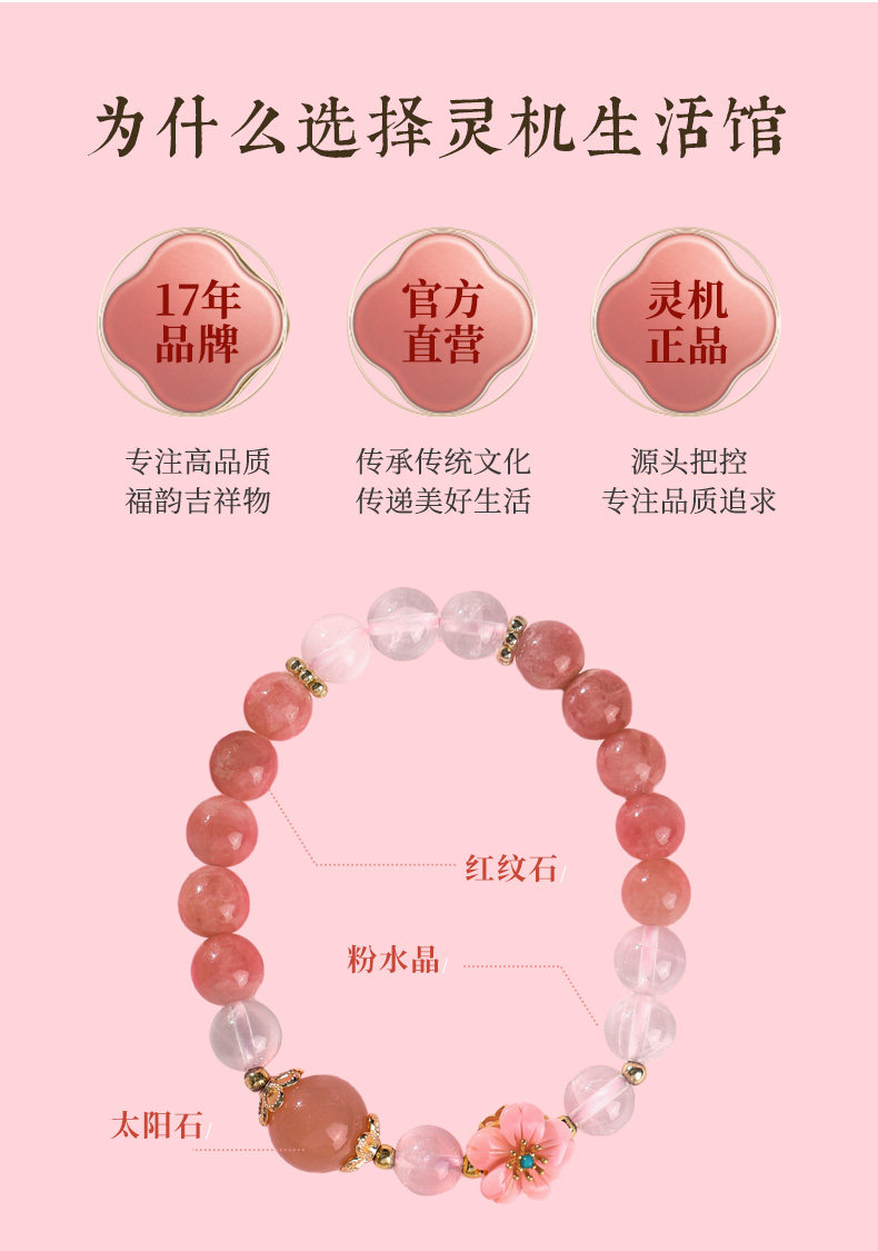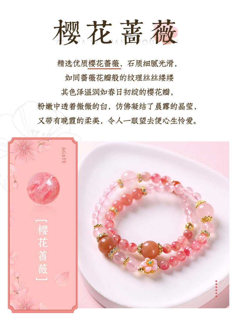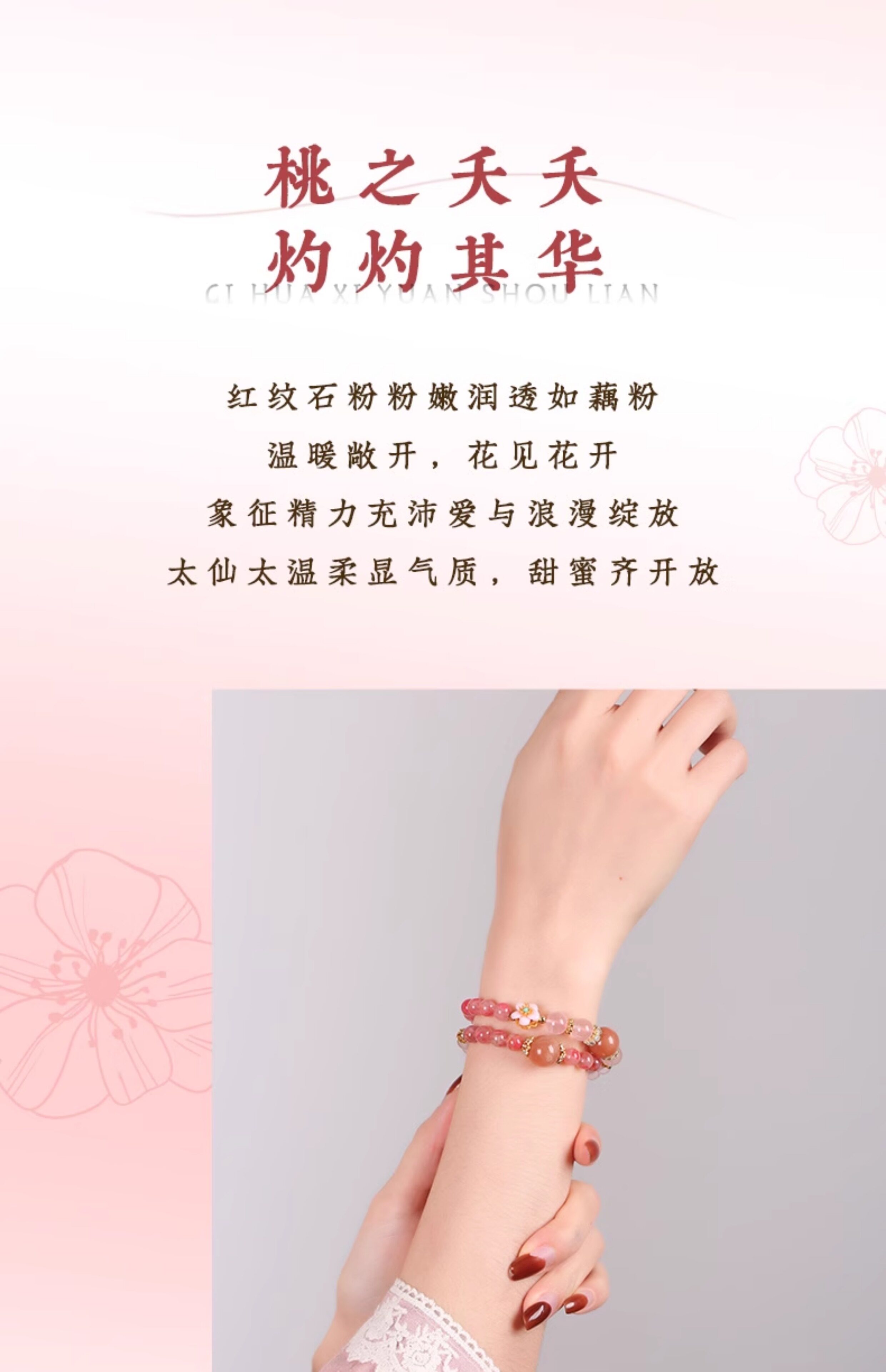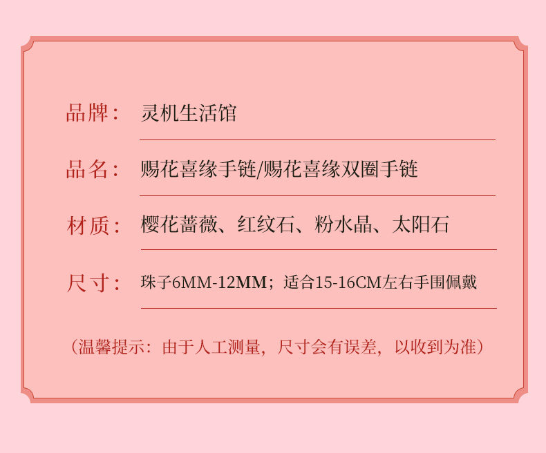 【祈愿吉品】【赐花喜缘】桃花红纹石手链女桃之夭夭心动粉澳宝手串