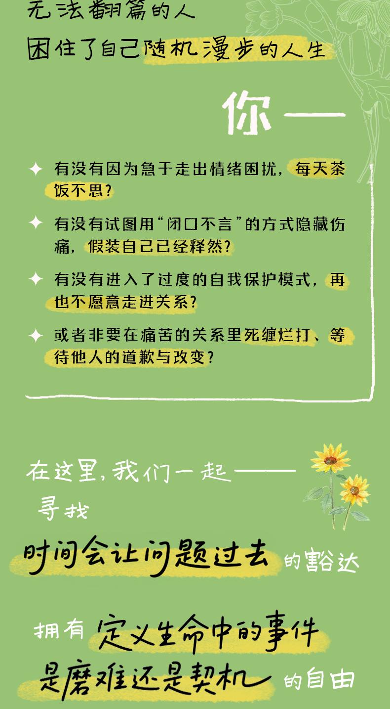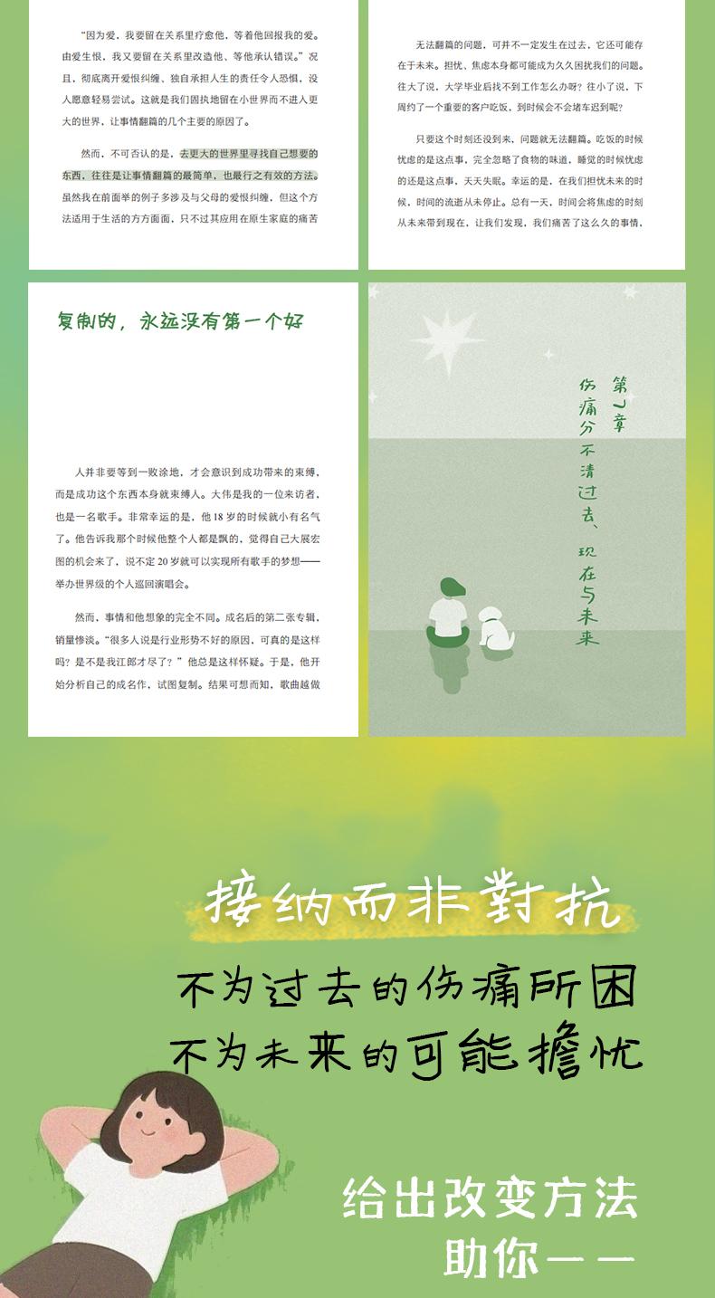 有些事总是看起来很大!然而,问题有多大,其实取决于我们的认知世界有多大,毕竟“茶杯里的风暴在浴缸里不值一提”! 本书用平实的语言剖析了人们在生活中难以“翻篇”的十种常见原因,既包括个人认知局限,也包括行为模式误区,如急于摆脱痛苦却忽略了时间的作用、因不接纳现实而深陷痛苦、隐藏伤痛导致问题恶化、被过去的伤痛束缚对未来悲观预判、通过惩罚他人或自己使事情变糟、用错误的方式满足核心需求,甚*成功也会成为局限,阻碍新的发展,等等。作者针对每种误区*给出了相应的解决方法,帮助读者放大个人对世界的认知、学会等待、接纳现实、勇敢表达、自我察觉、运用意义疗法、对自己的生活负责、与负面的情绪和想法拉开距离、尝试新的自我满足方式,以及不断突破成功的局限,走向更好的生活状态。 本书适合被大小问题困扰而无法前行的人。