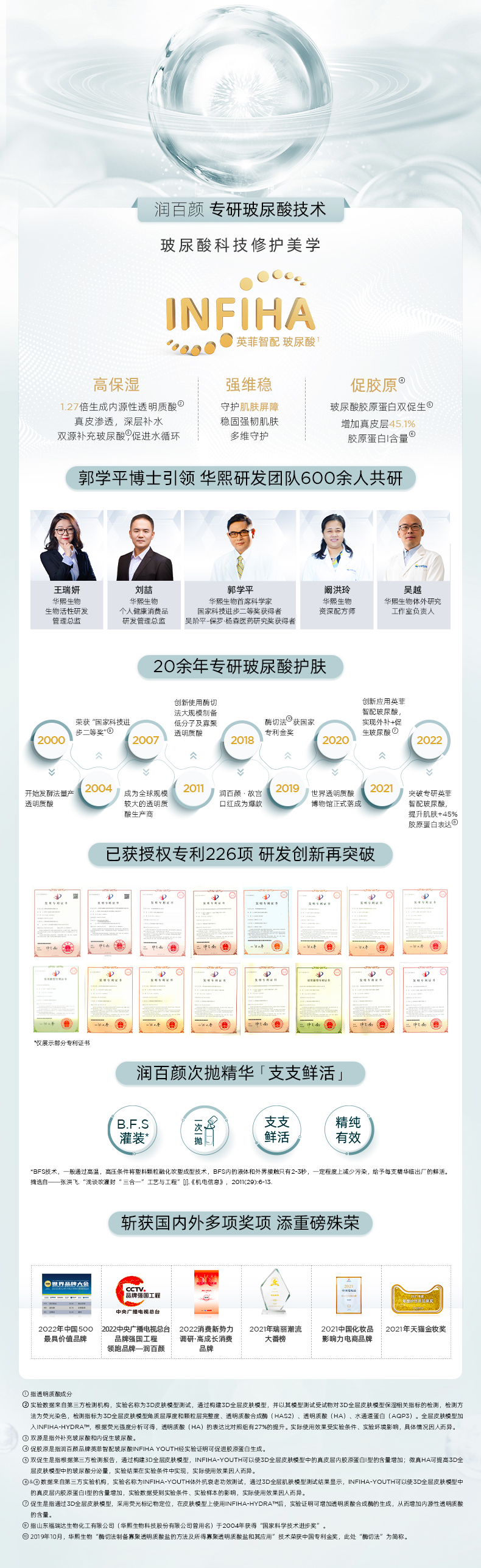 润百颜(BIOHYALUX)作为华熙生物旗下专研玻尿酸(学名透明质酸)的核心品牌,主要涵盖医疗美容、功能性护肤品两大业务板块,EC线下诊所也会用到他家的针剂。润百颜产品的核心原料透明质酸,都是华熙生物自有生产,不仅获得美国DMF登记号,还于2019年第四次顺利通过美国FDA的现场检查。基于华熙生物所独有的透明质酸生产专利技术,润百颜的原料在不同分子量透明质酸的复配上具有技术优势。
