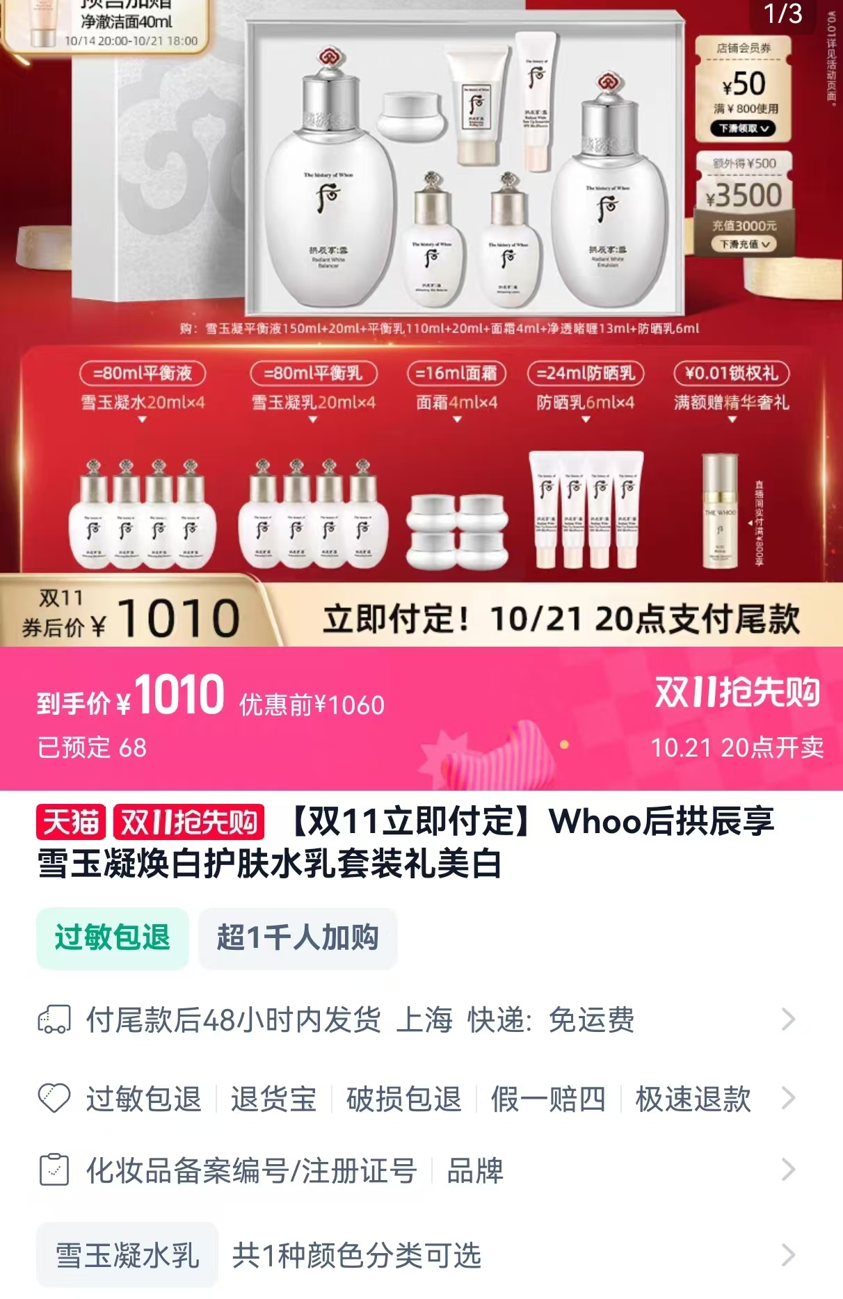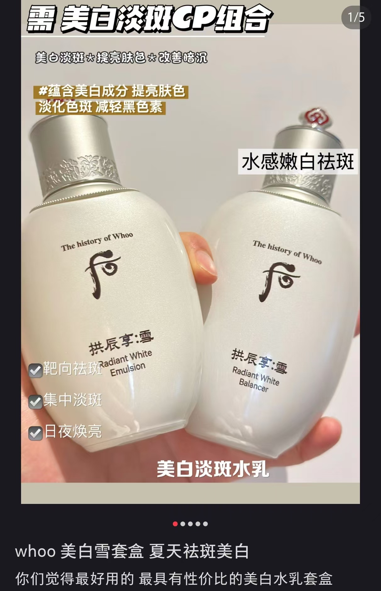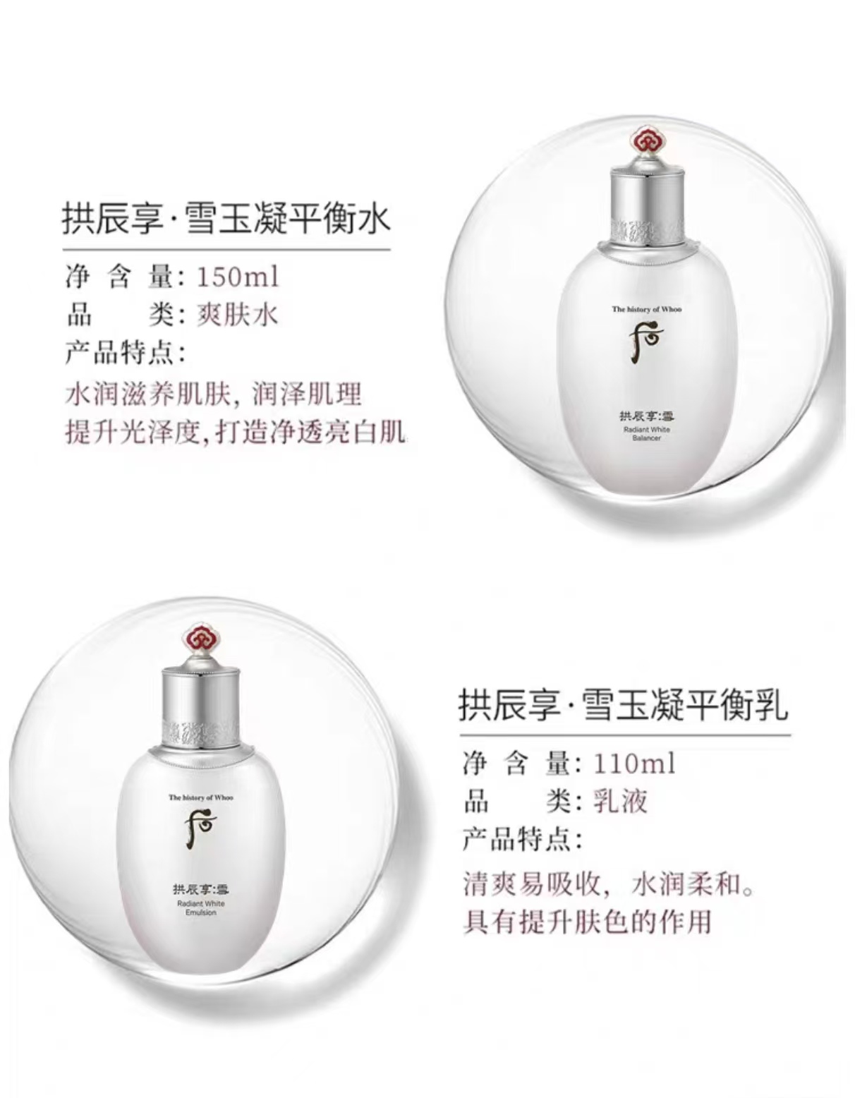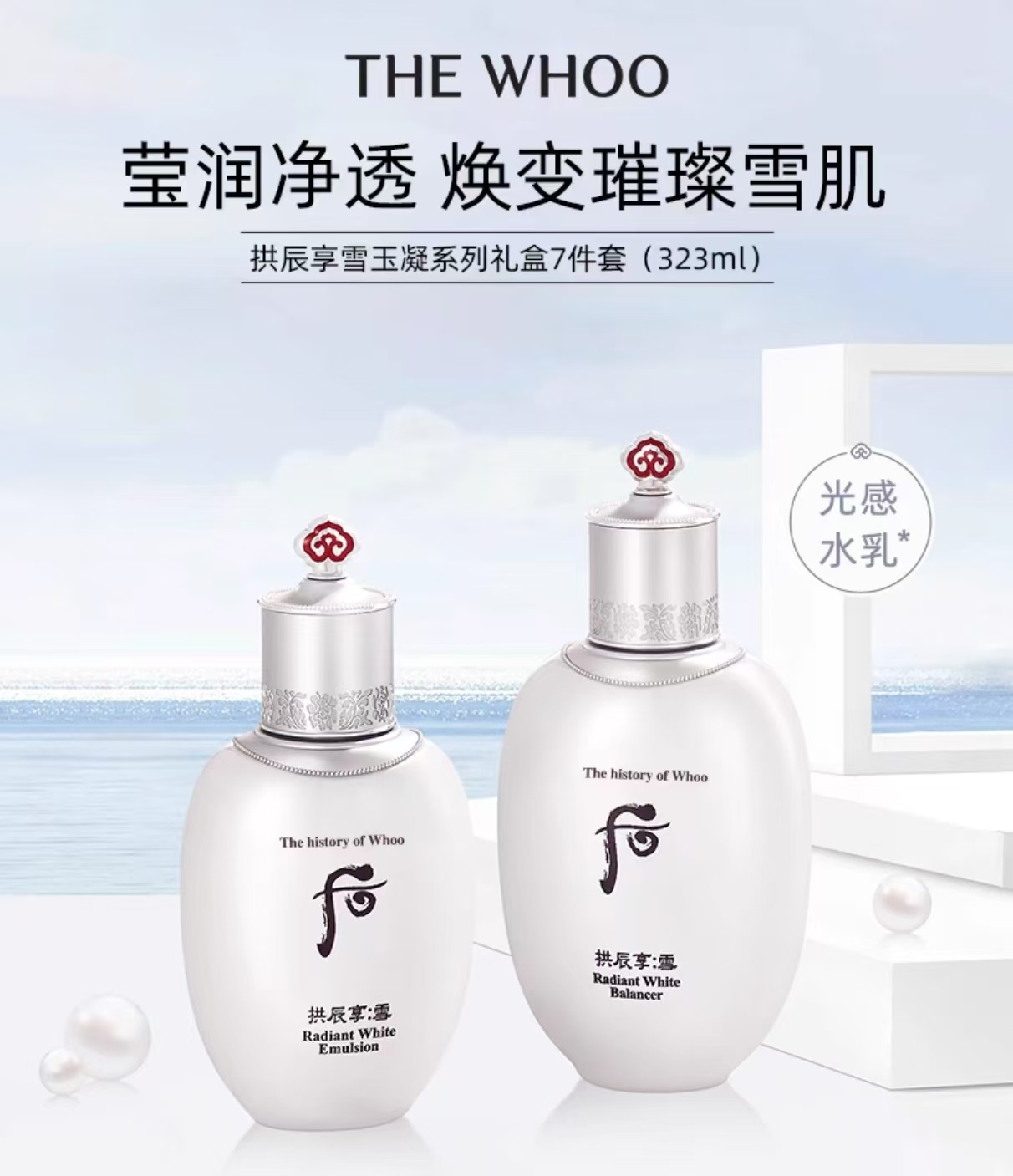 抢订韩国税仓几套拱辰享雪玉美白套装,黄黑皮,淡斑白瓶,后黑马测评好用,韩国税仓直邮388一套6件套