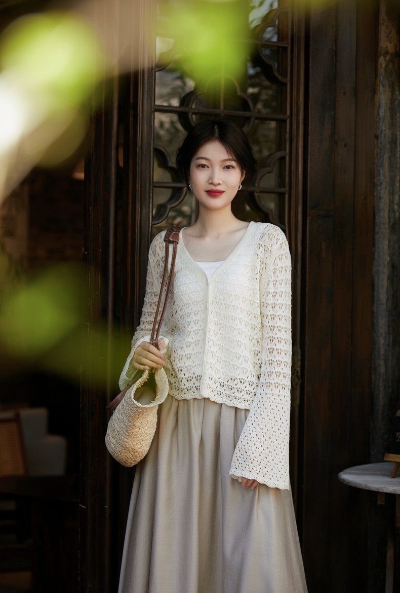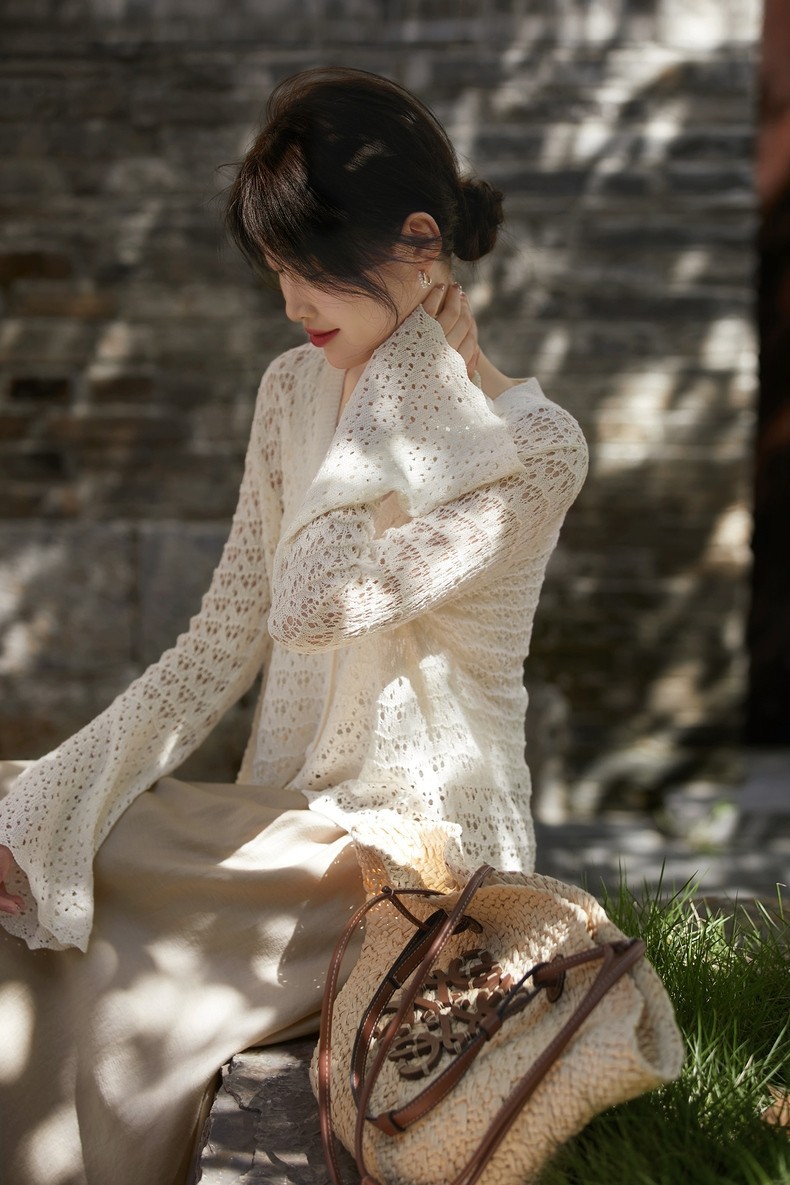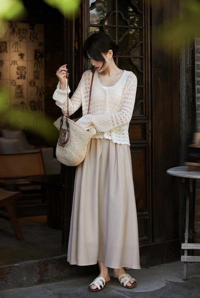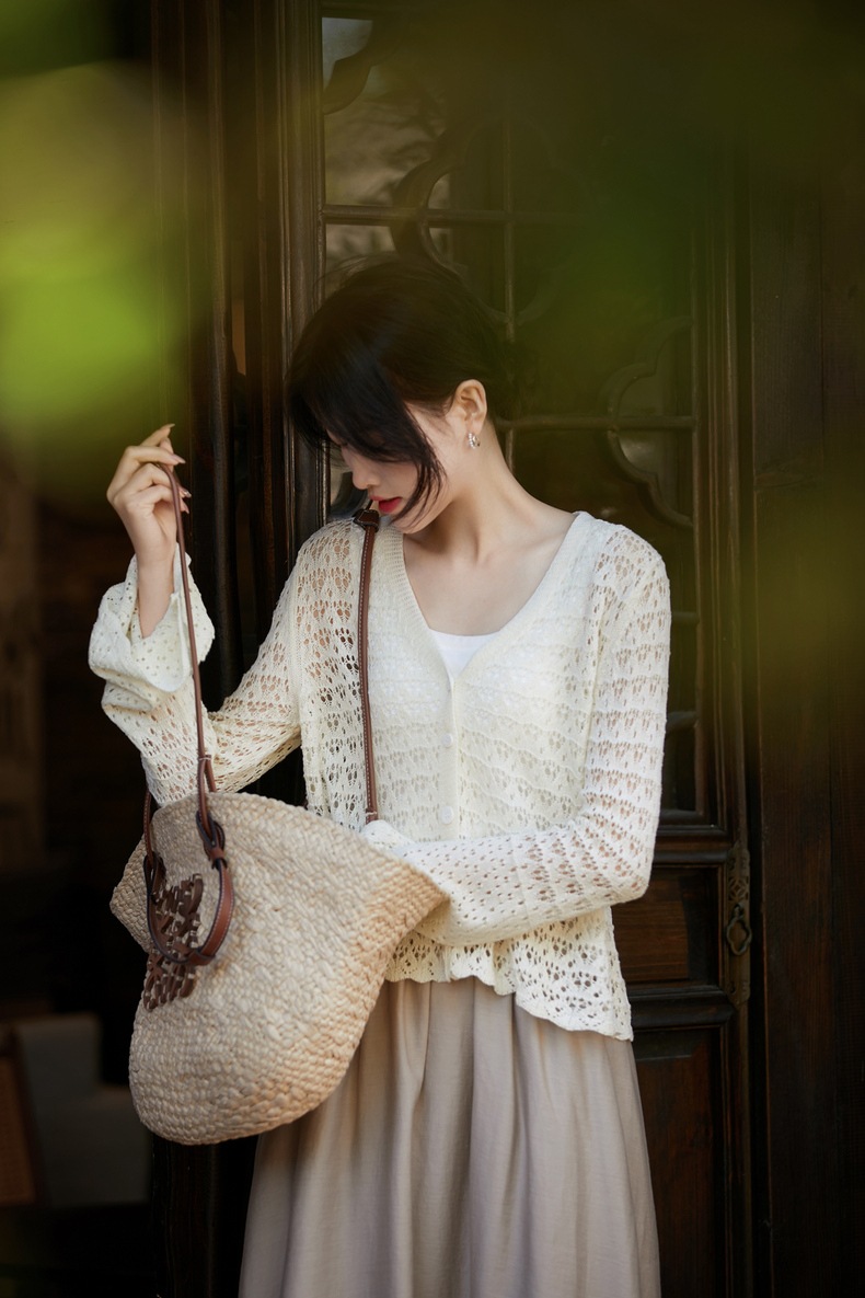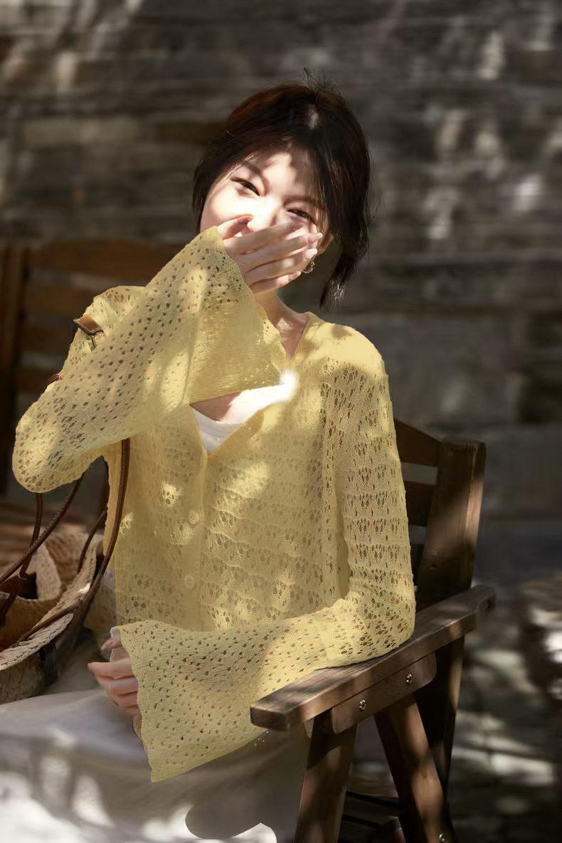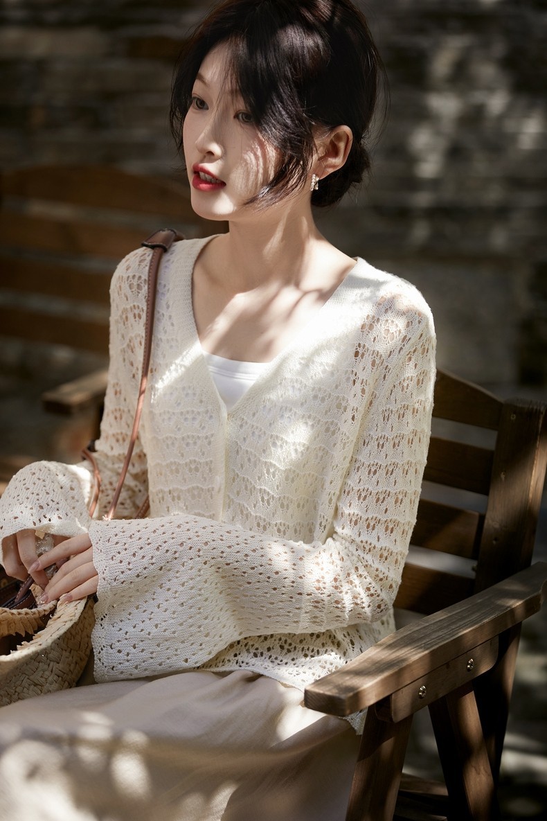 超美!搭配吊带背心,吊带连衣裙裙一绝!夏天必备微透镂空钩花开衫!衣柜必备单品~轻柔如云、上身丝滑自带凉感。