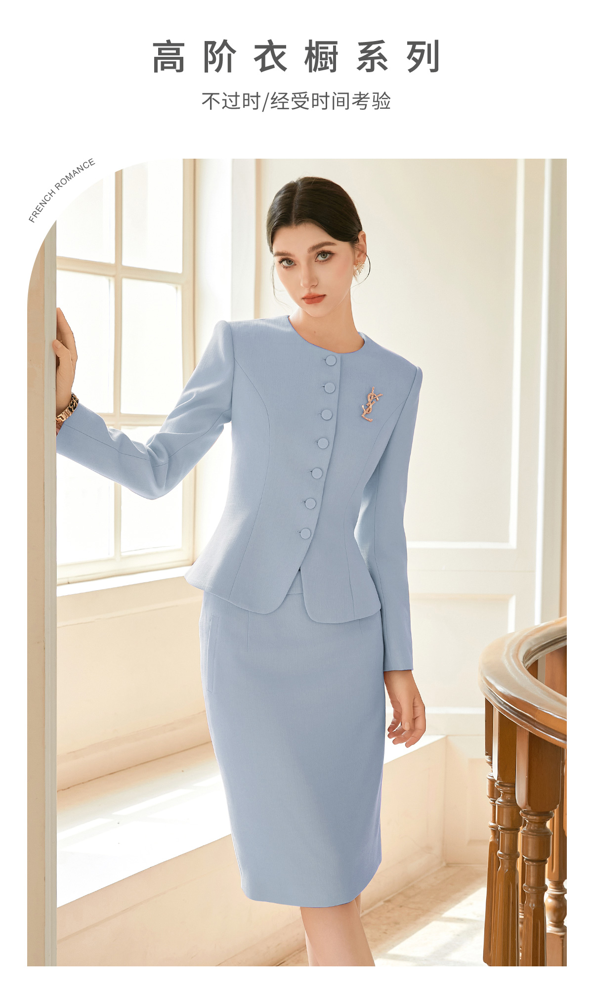 AD秋装女款2024年新款套装时尚气质蓝色圆领长袖外套名媛范工作服